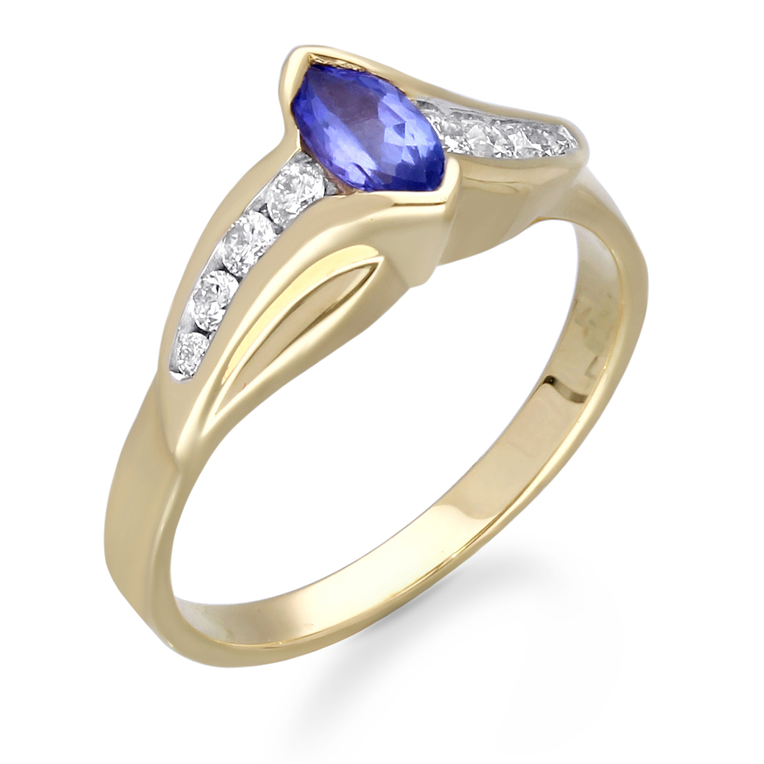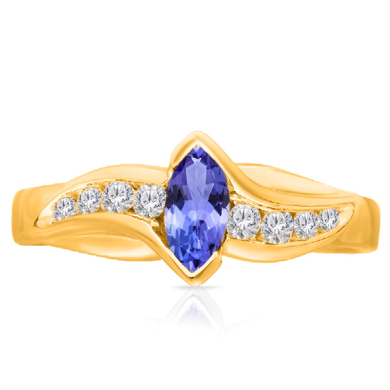 14K YELLOW GOLD TANZANITEV WITH WHITE DIAMOND FASHION RING