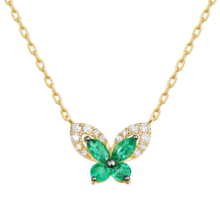 14K YELLOW GOLD EMERALD WITH WHITE DIAMOND FASHION NECKLACE