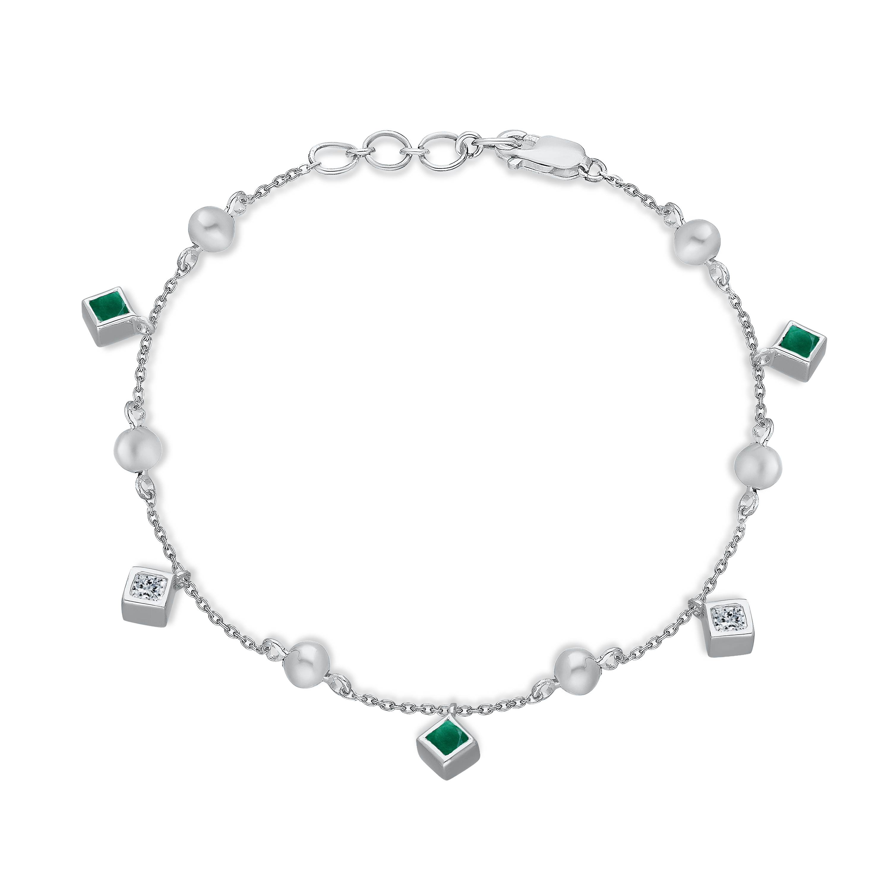 14K WHITE GOLD EMERALD WITH PRINCESS DIAMOND FASHION BRACELET