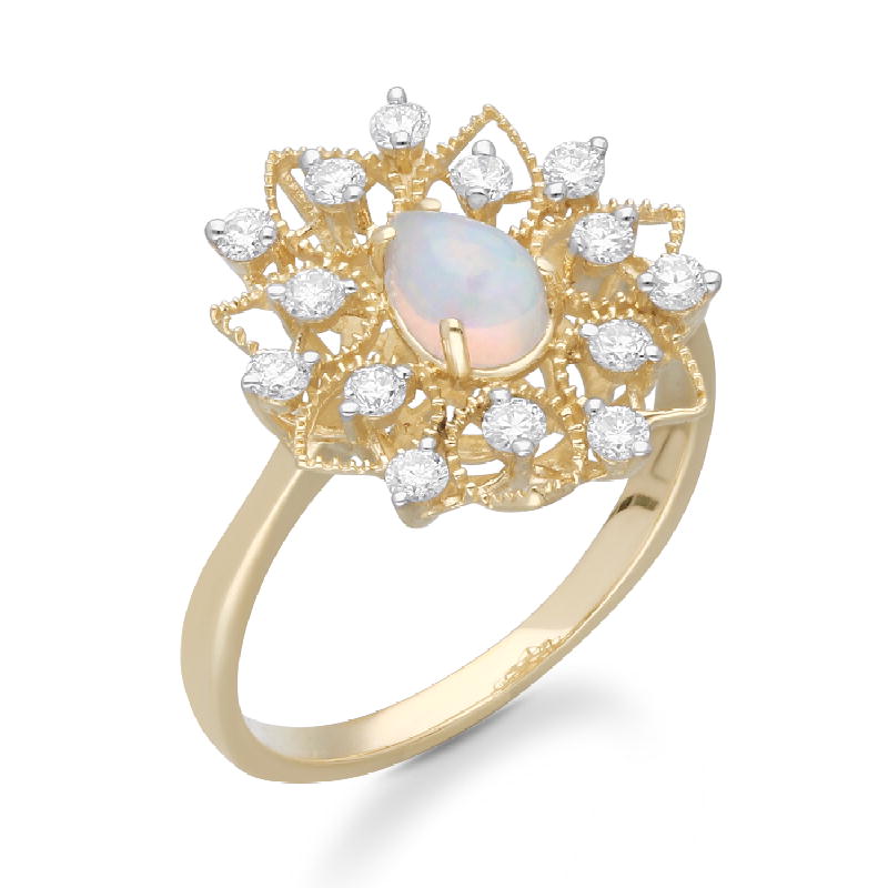 14K YELLOW GOLD OPAL & WHITE DIAMOND FASHION RING