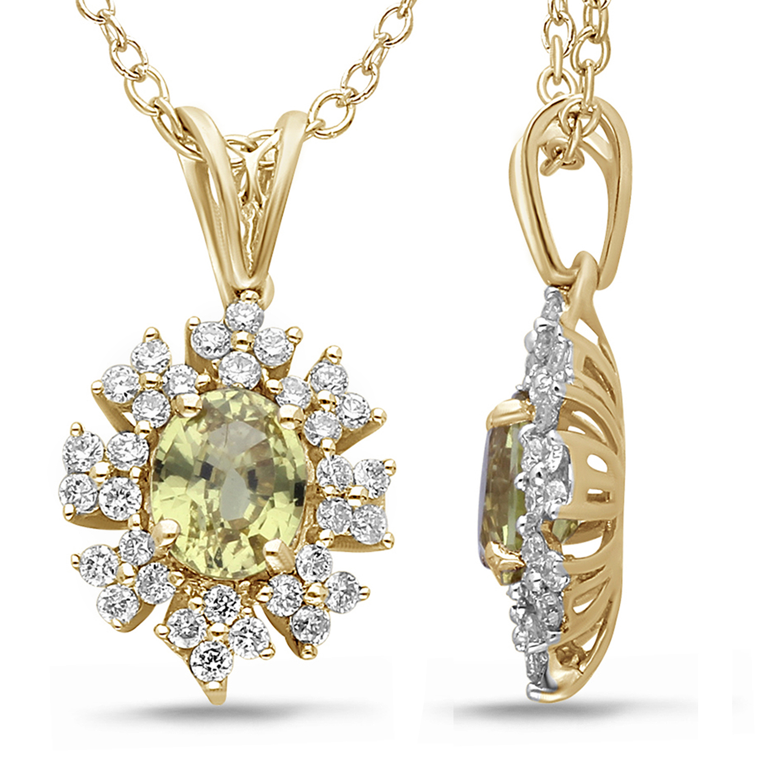 14K YELLOW GOLD EMERALD WITH WHITE DIAMOND FASHION PENDANT