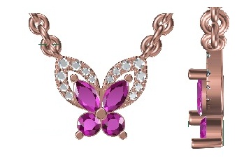 14K ROSE GOLD RUBY WITH WHITE DIAMOND FASHION NECKLACE
