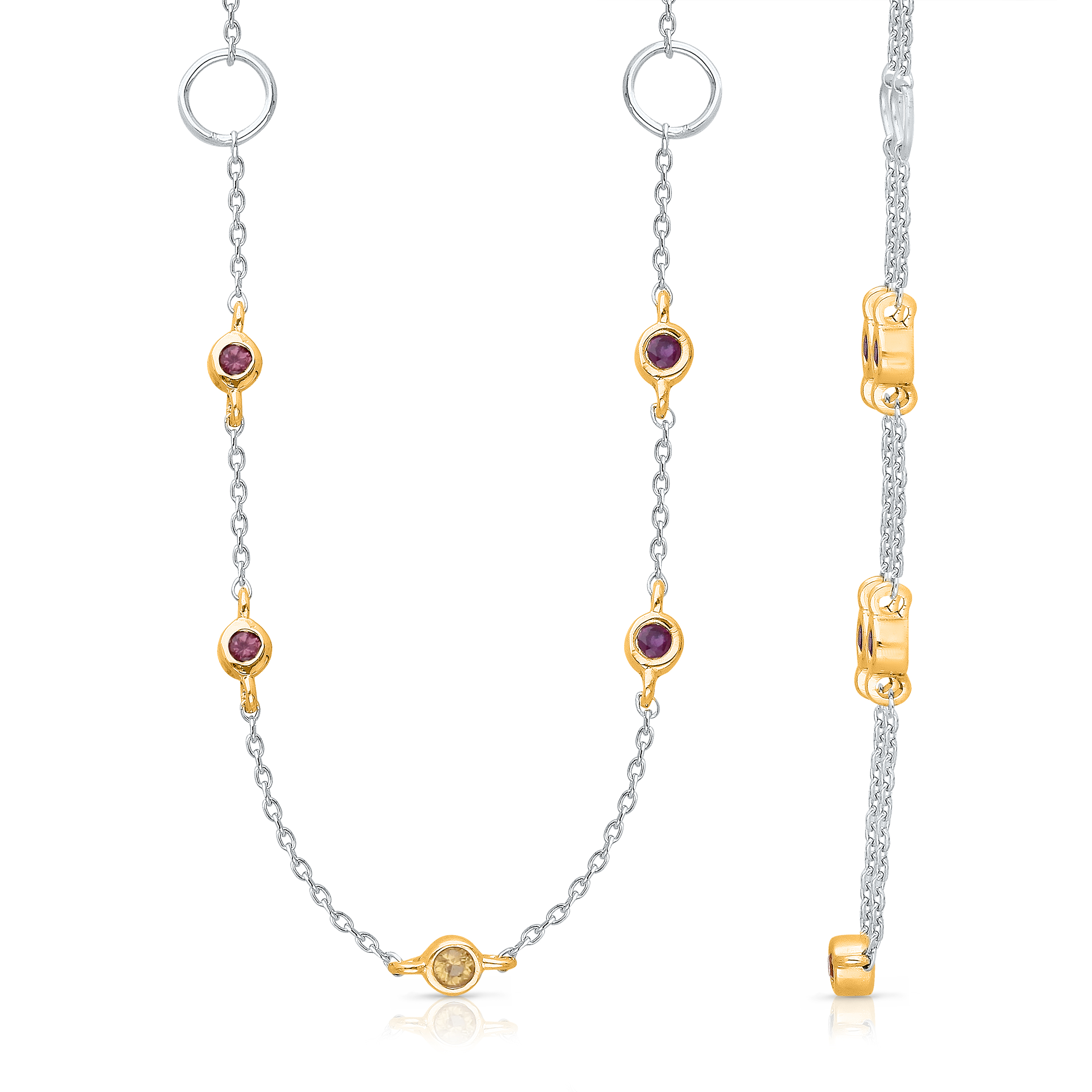 14K ROSE&WHITE GOLD WITH RUBY&MULTI SAPPHIRE FASHION NECKLACE