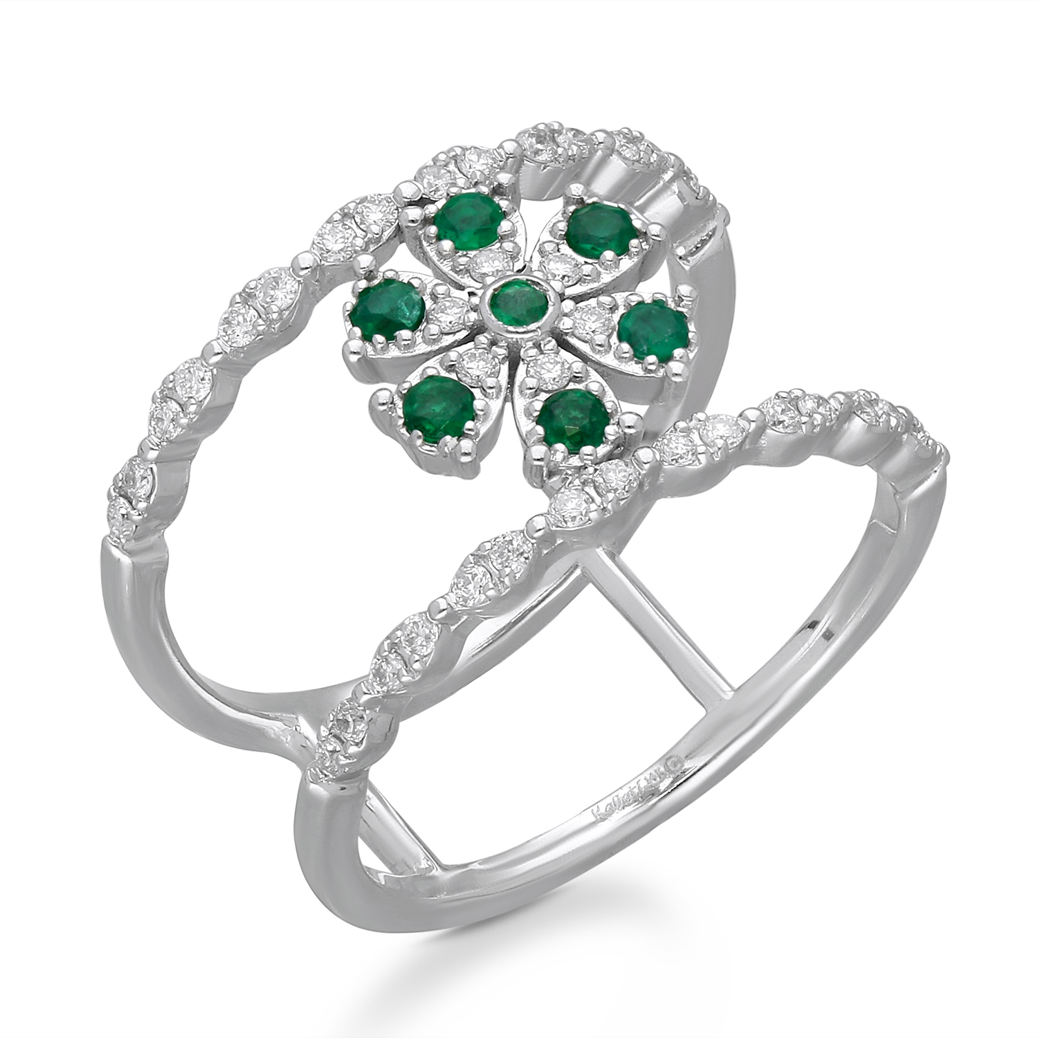 14K WHITE GOLD EMERALD & WHITE DIA RIN