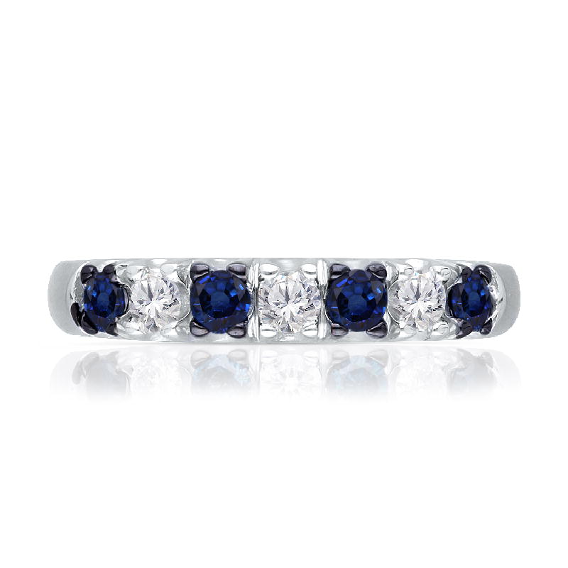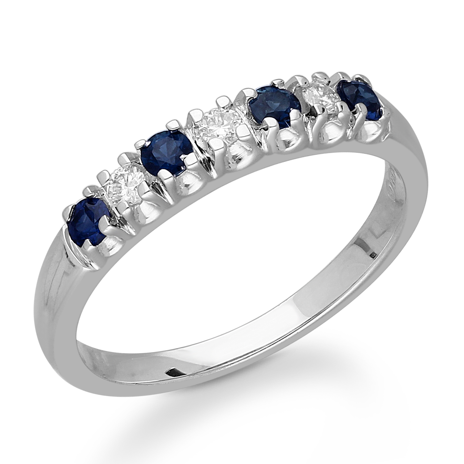 14K WHITE GOLD SAPPHIRE & WHITE DIA RING