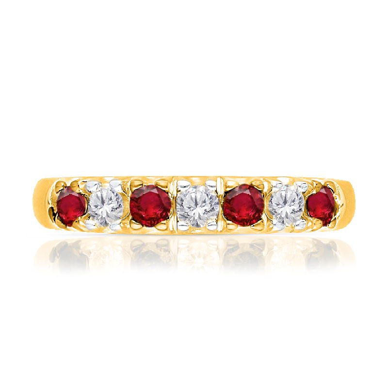 14K YELLOW GOLD RUBY WHITE DIAMOND FASHION RING