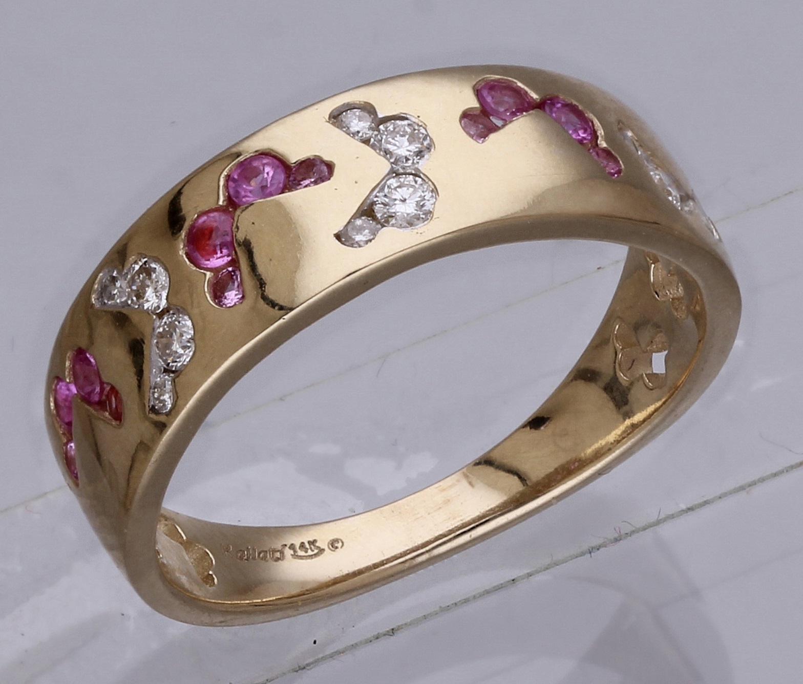 14K YELLOW GOLD MULTI SAPPHIRE WITH WHITE DIAMOND FASHION RING