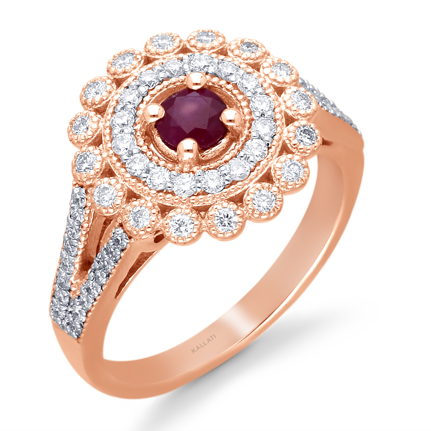 14K ROSE GOLD RUBY & WHITE DIAMOND