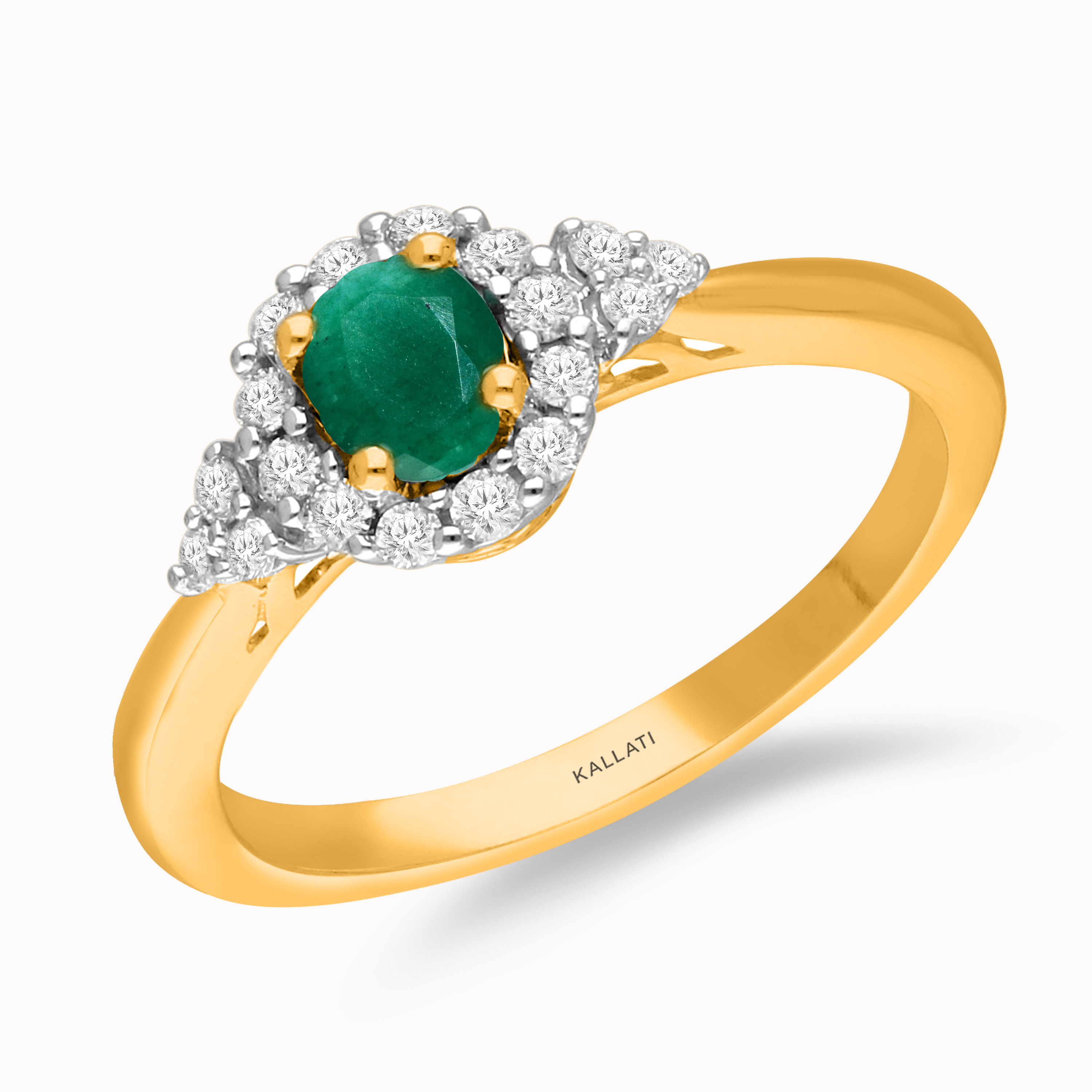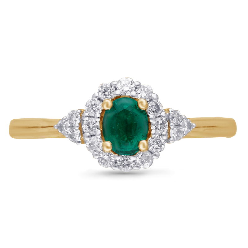14K YELLOW GOLD EMERALD & WHITE DIAMOND