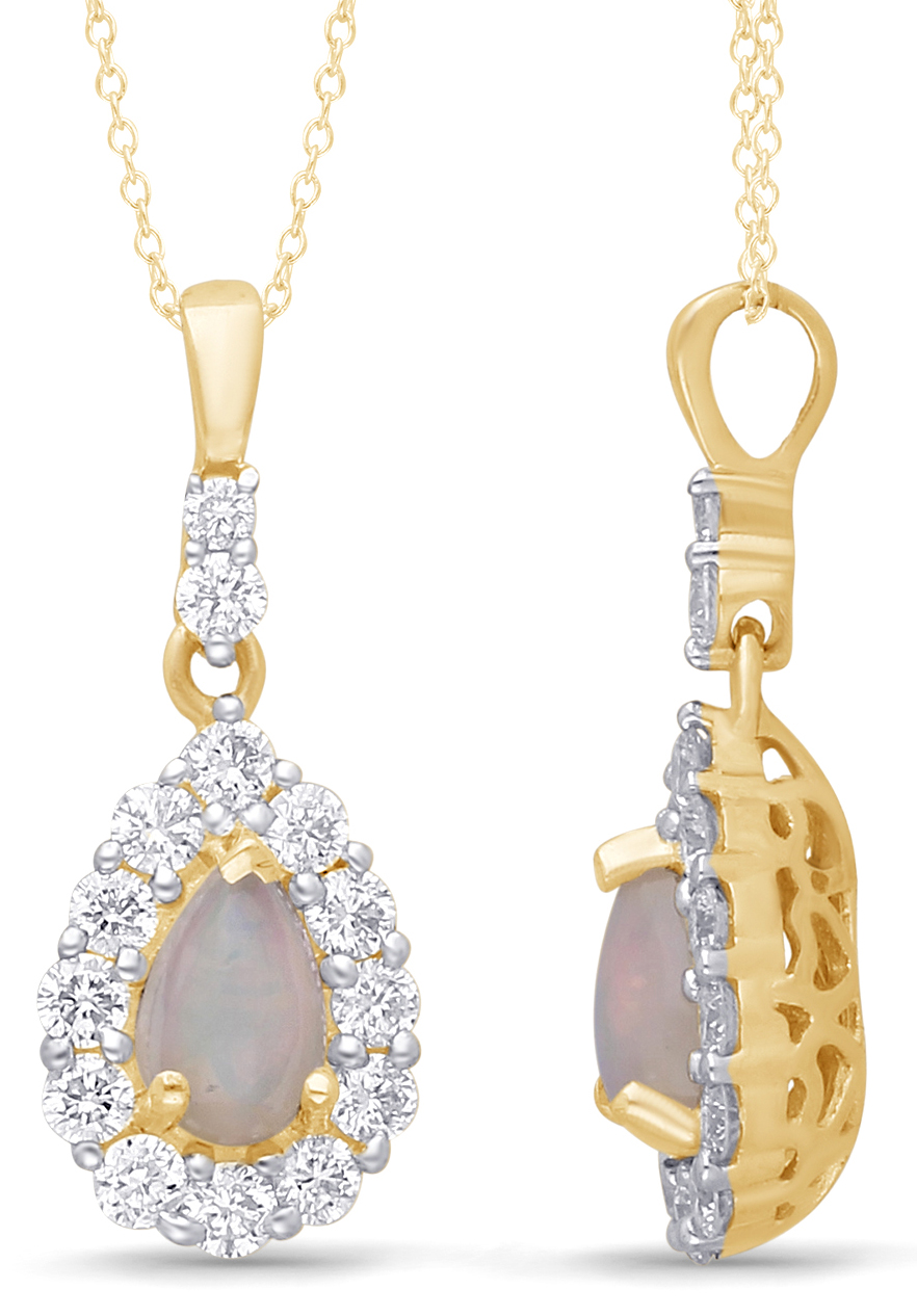 14K YELLOW GOLD OPAL & WHITE DIAMOND PEN