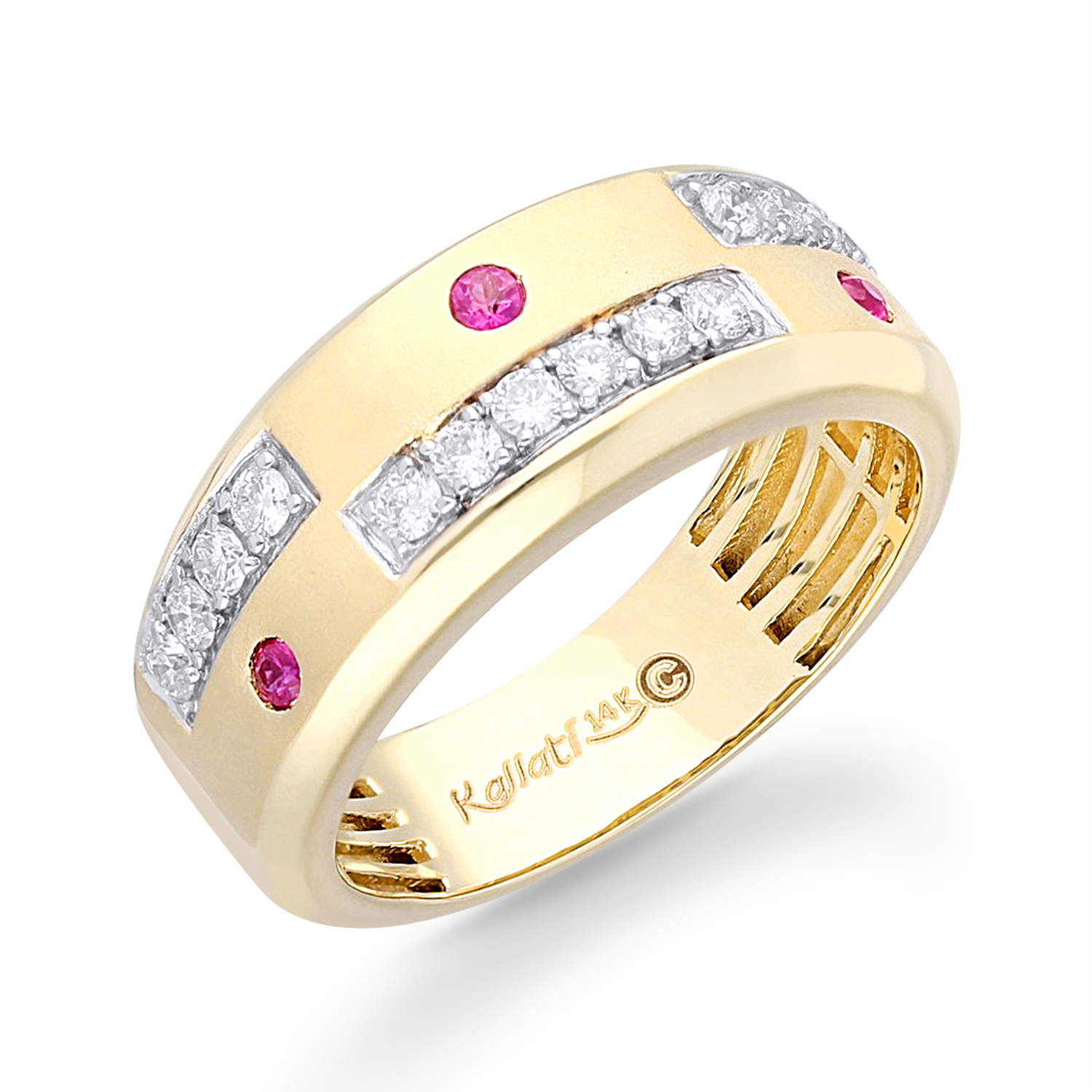 14K YELLOW GOLD RUBY WHITE DIAMOND MENS RING