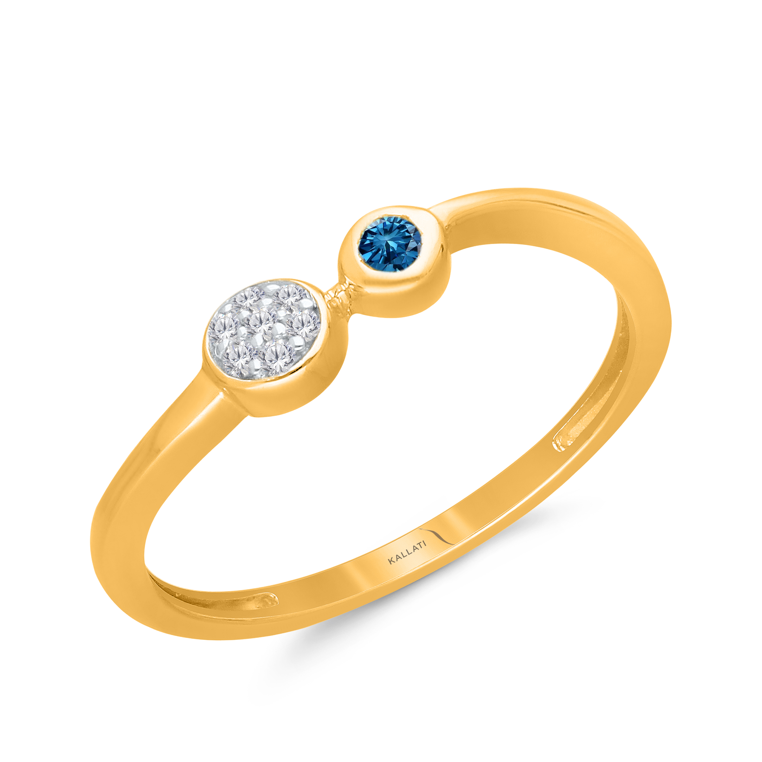 rK YELLOW GOLD BLUE TOPAZ & WHITE DIAMOND FASHION RING