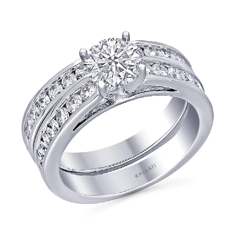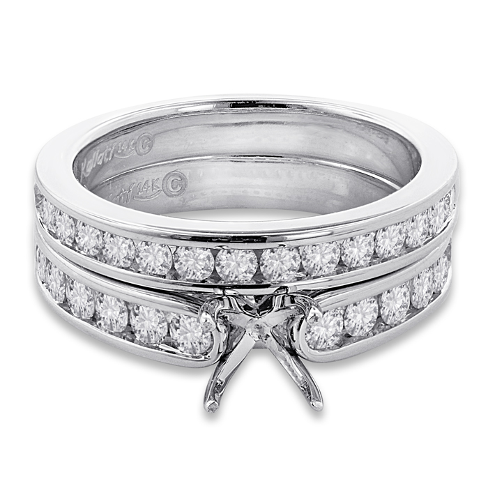 14K WHITE GOLD SEMI MOUNT ENG. RING & BA