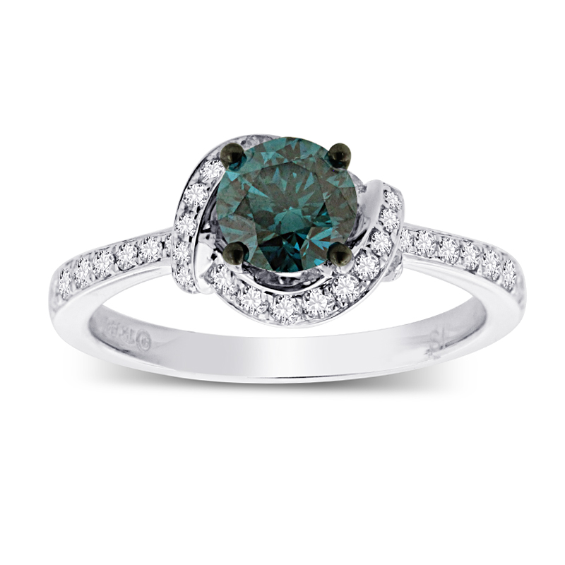 14K WHITE GOLD SI BLUE CENR ENG RING