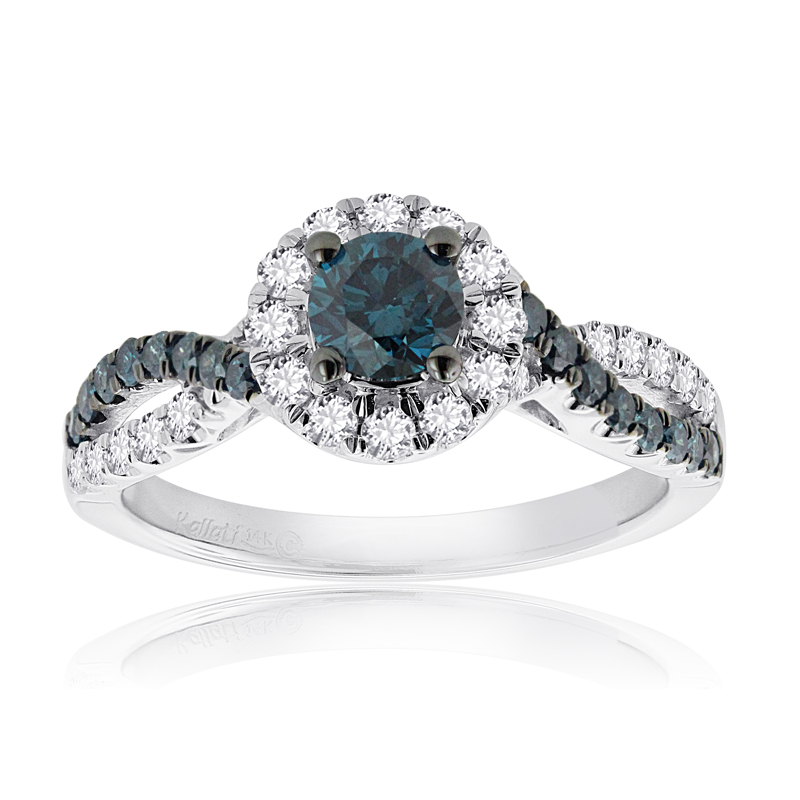 14K WHITE GOLD SI BLUE & WHITE DIA ENG R