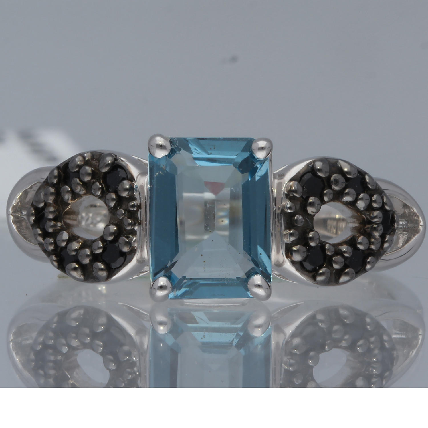 SILVER SQUARE LONDON BLUE TOPAZ RING