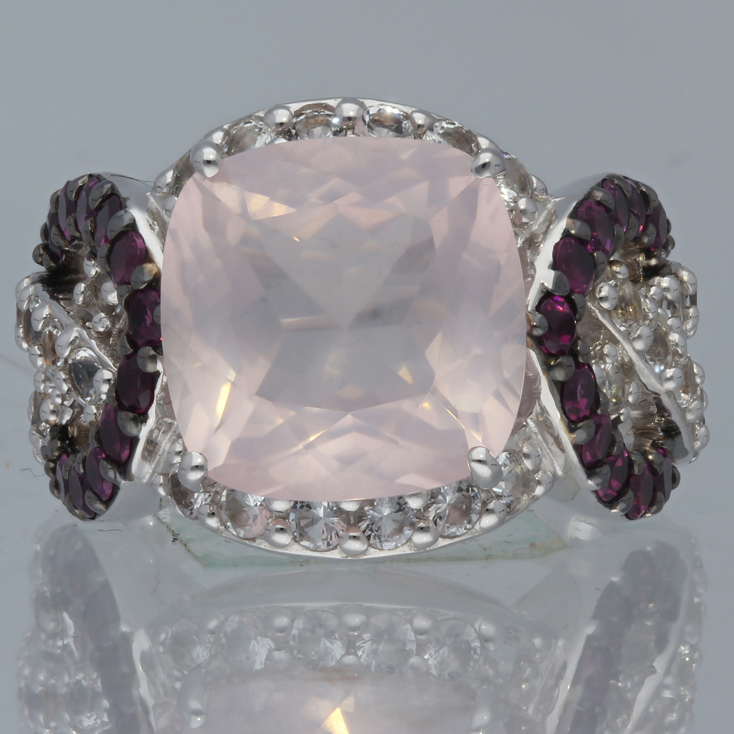 SILVER SQUARE ROSE QUARTZ FASHION RING