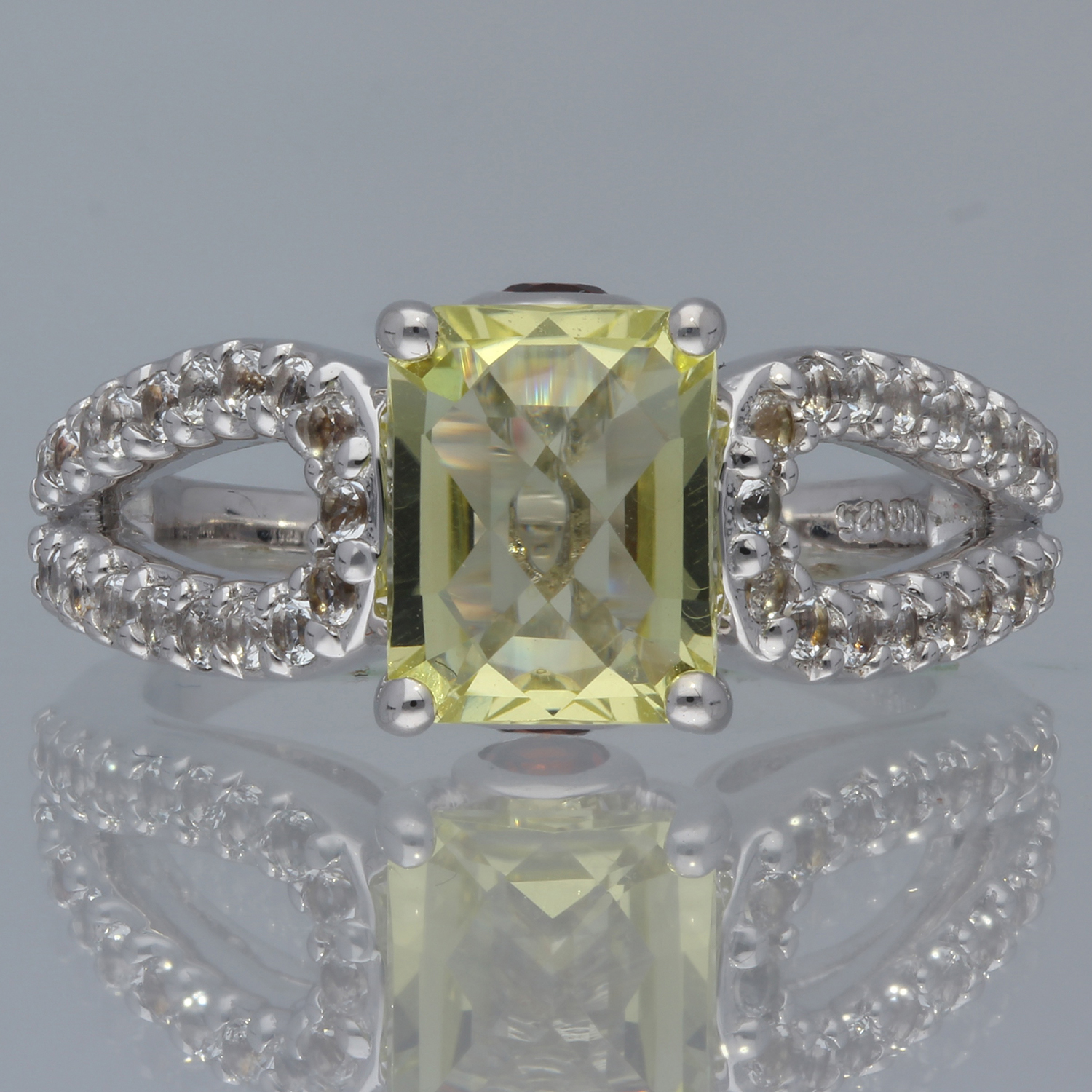 SILVER SQUARE LEMON TOPAZ FASHION RING