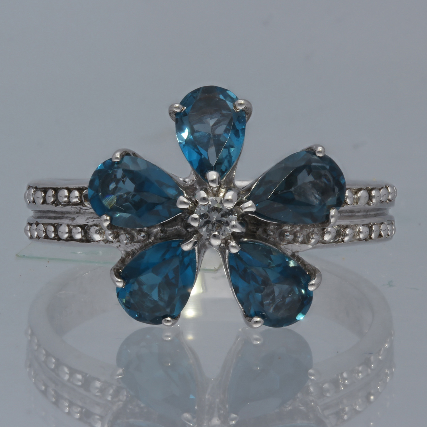 SILVER PEAR LONDON BLUE TOPAZ RING