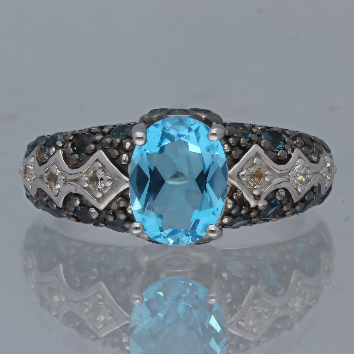SILVER OVAL BLUE TOPAZ FASHION RING
