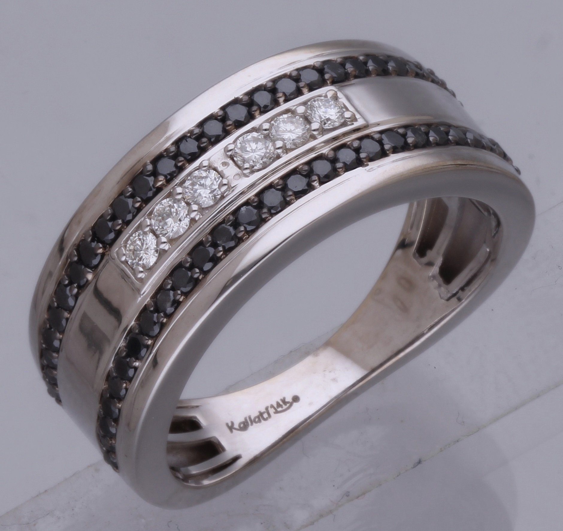 14K WHITE GOLD BLACK DIAMOND MENS FASHION RING