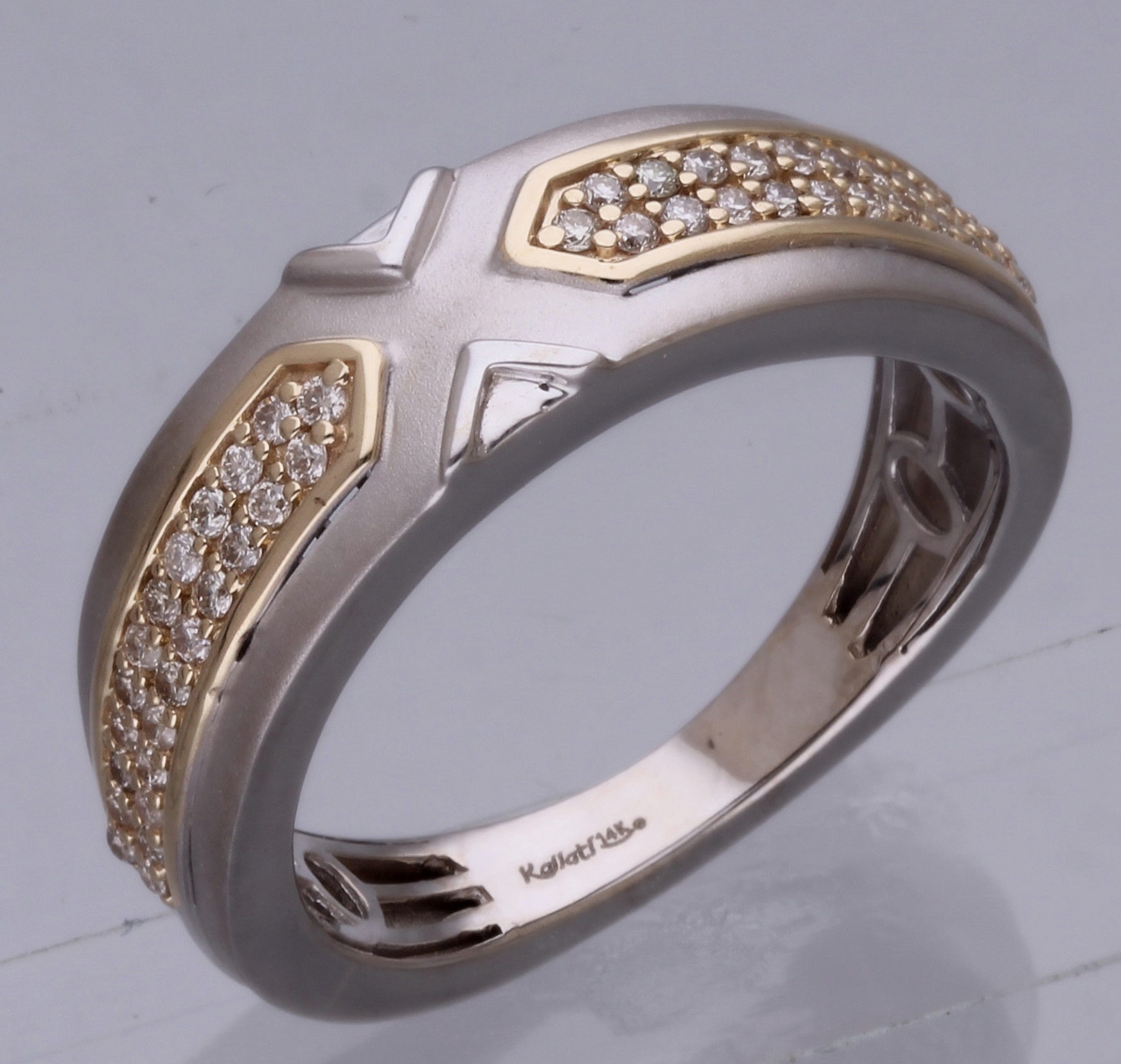 14K YELLOW AND WHITE GOLD WHITE DIAMOND MENS RING