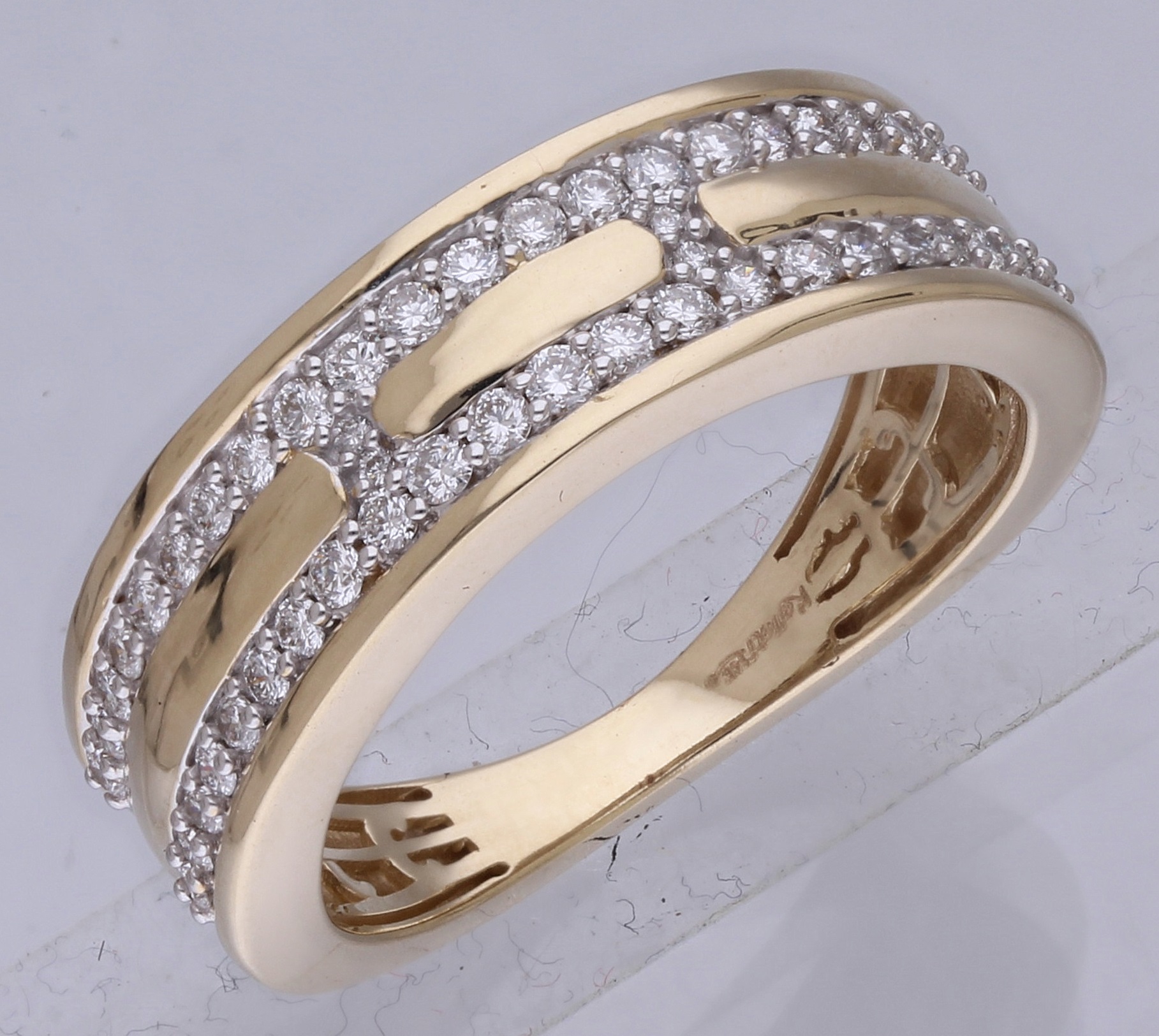 14K YELLOW GOLD WHITE DIAMOND MENS FASHION BAND