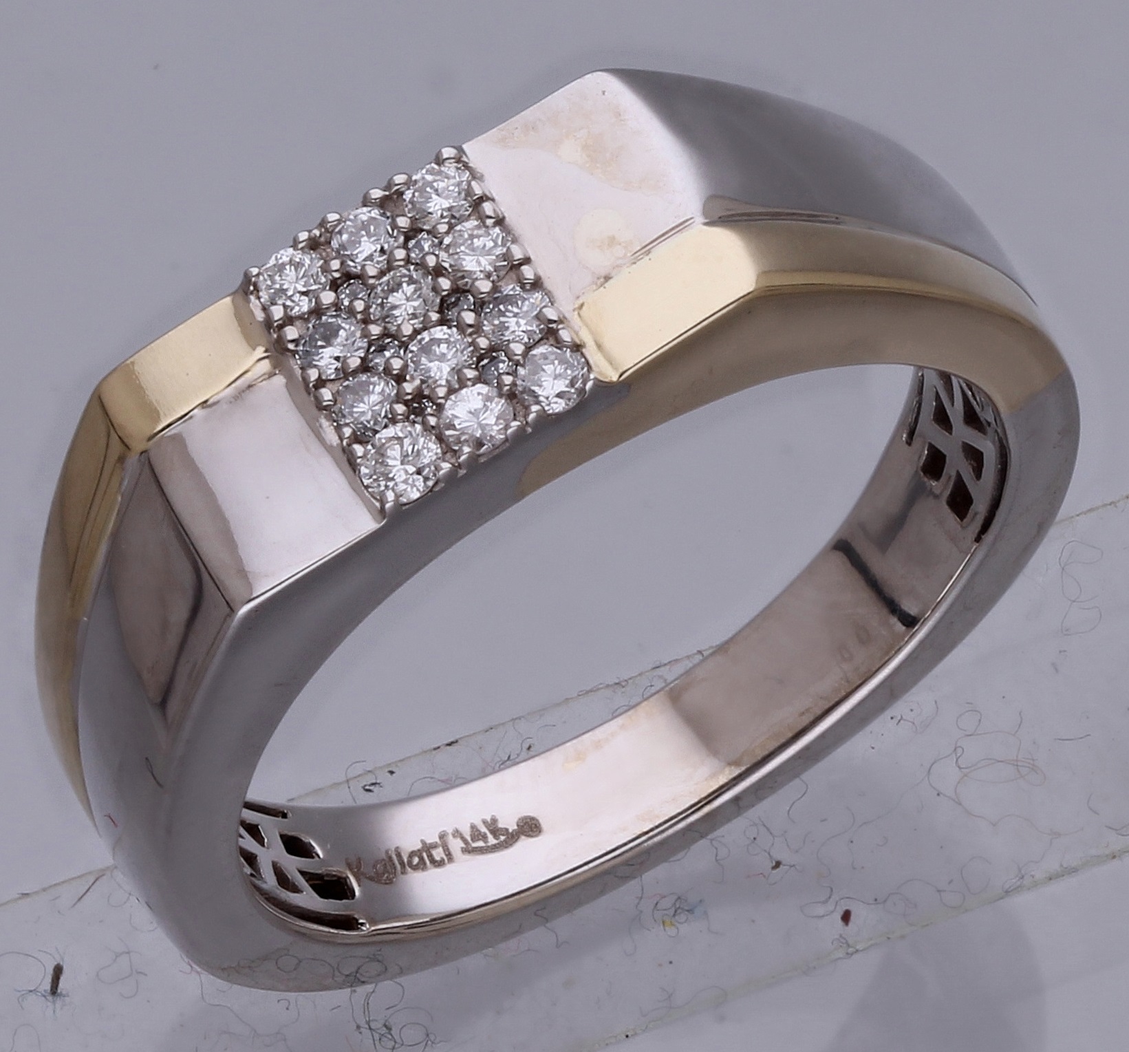 14K YELLOW & WHITE GOLD WHITE DIAMOND MENS RING