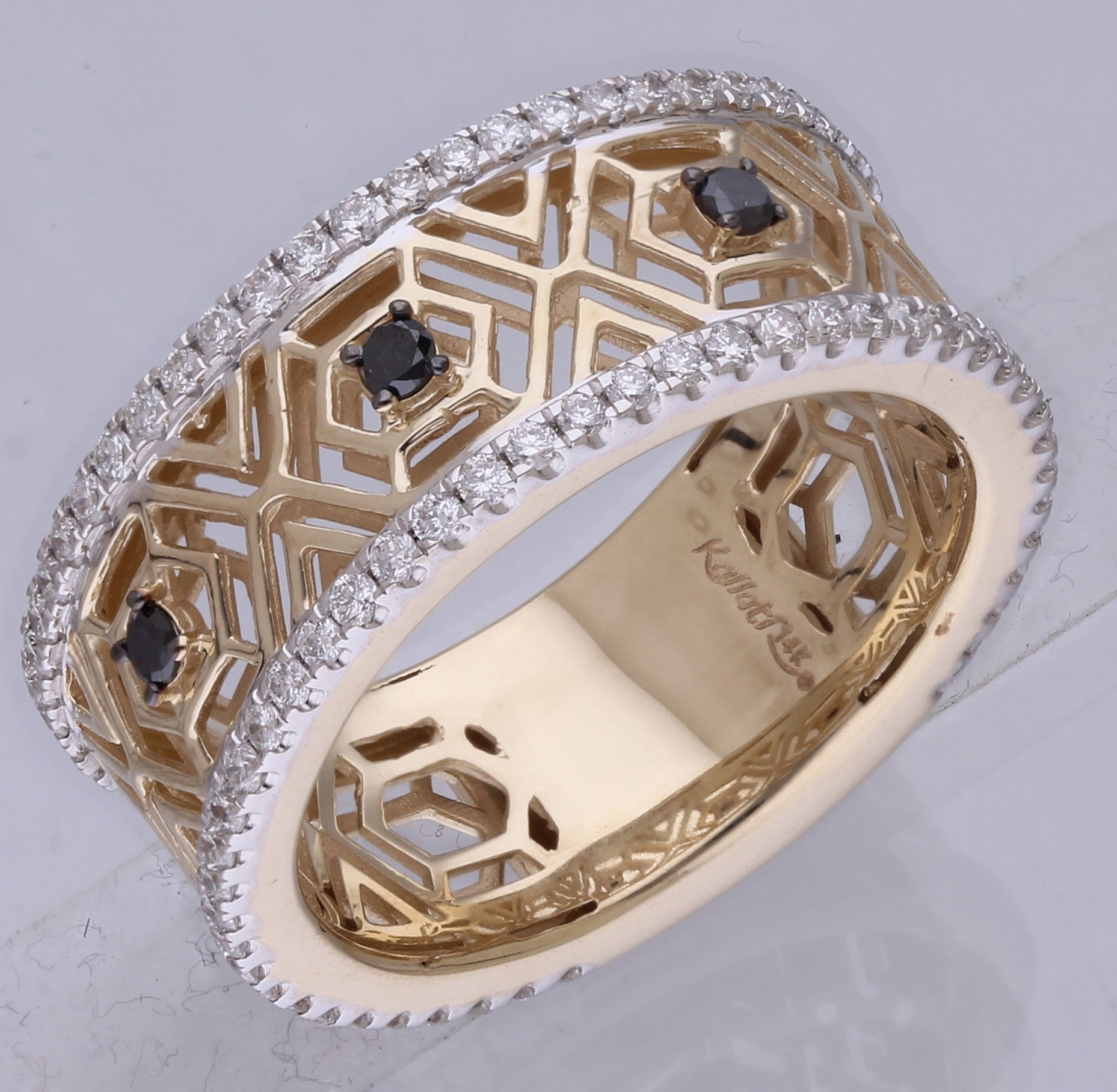 14K YELLOW GOLD BLACK DIAMOND & WHITE DIAMOND MENS RING