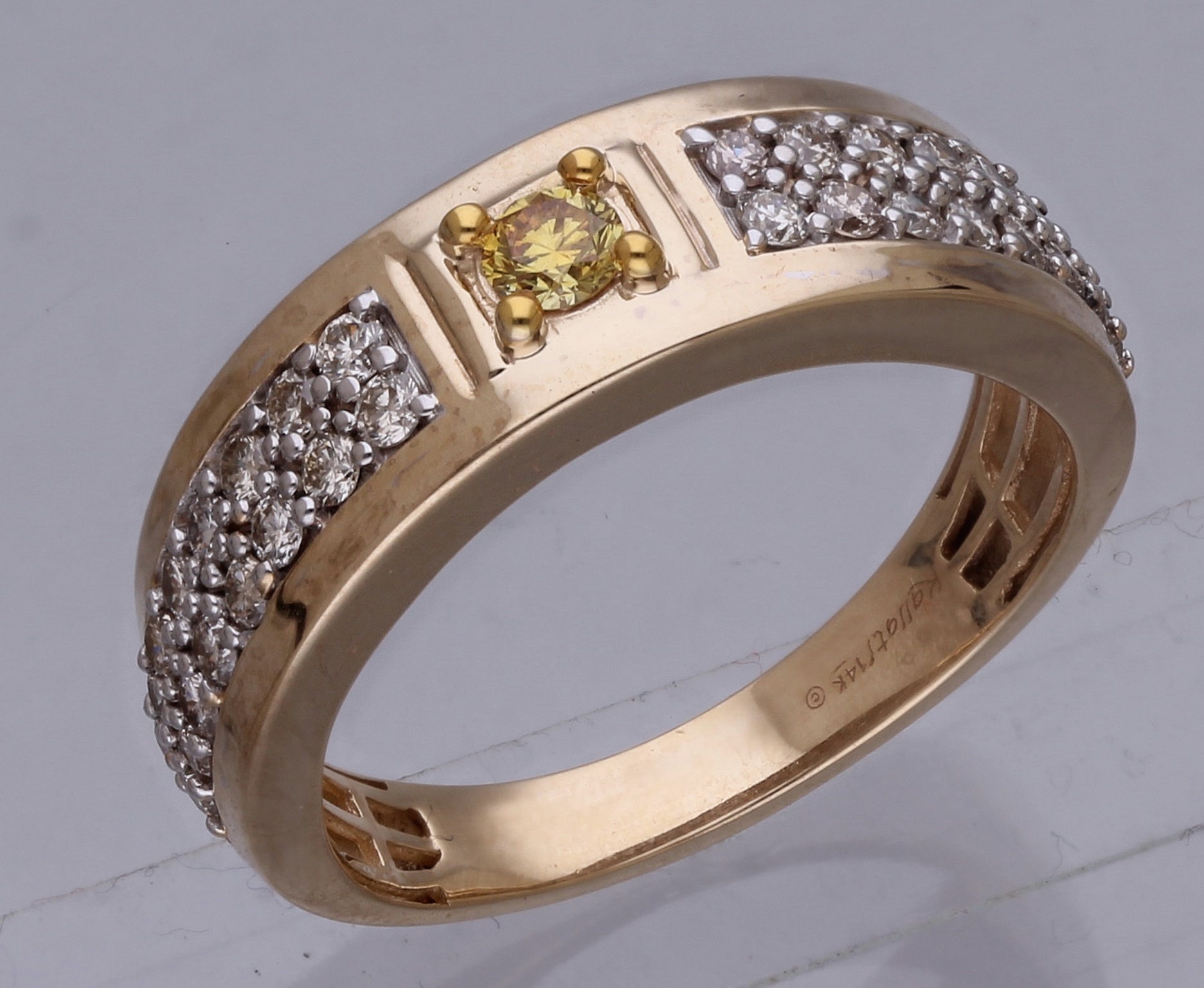 14K YELLOW GOLD FANCY YELLOW & WHITE DIAMOND MENS RING