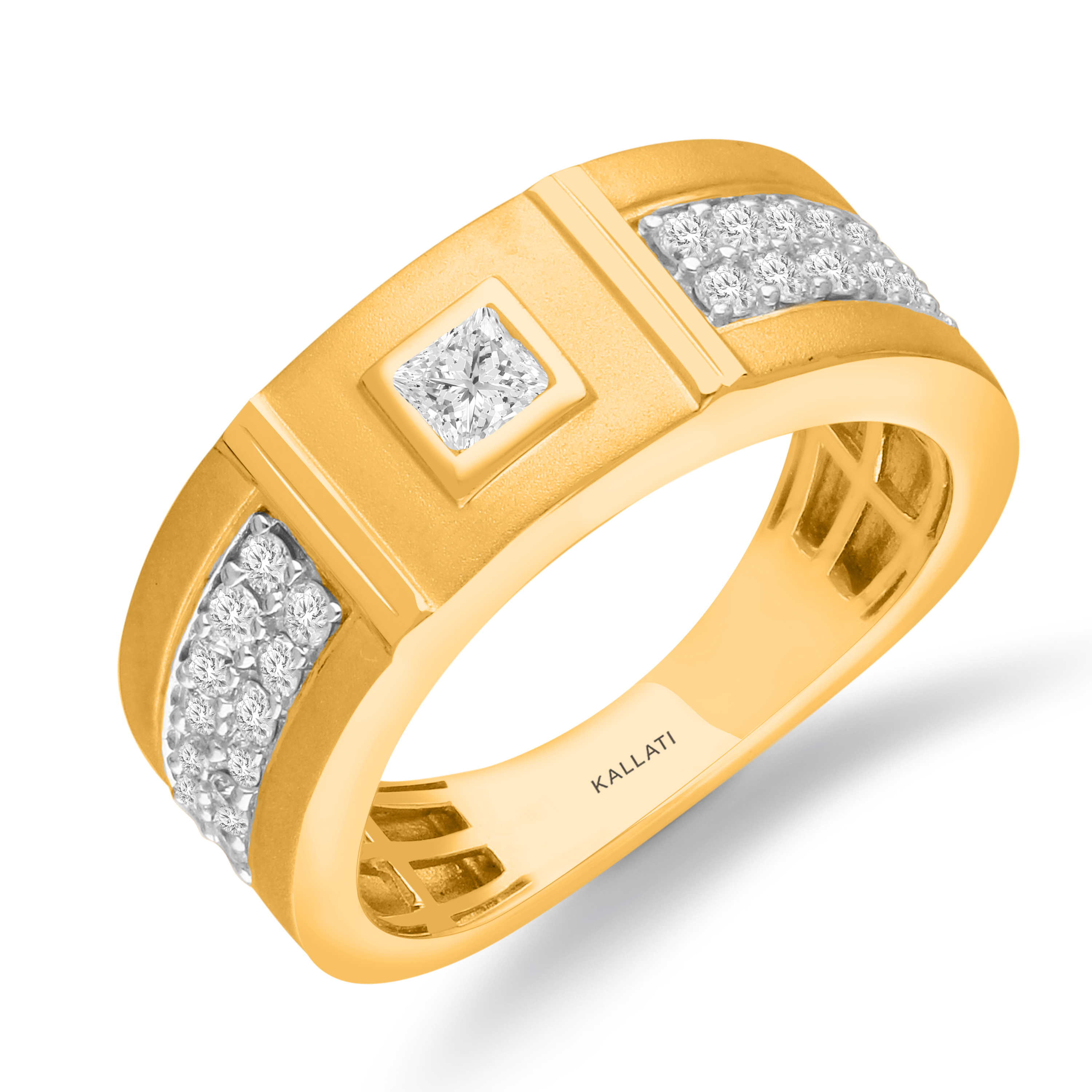 14K YELLOW GOLD WHITE DIAMOND MENS RING