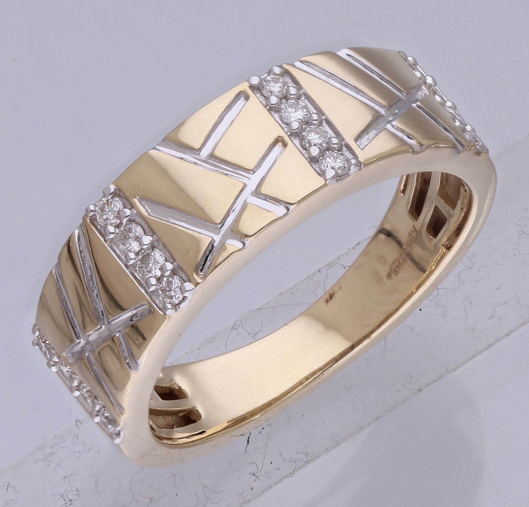 14K YELLOW GOLD WHITE DIAMOND MENS RING