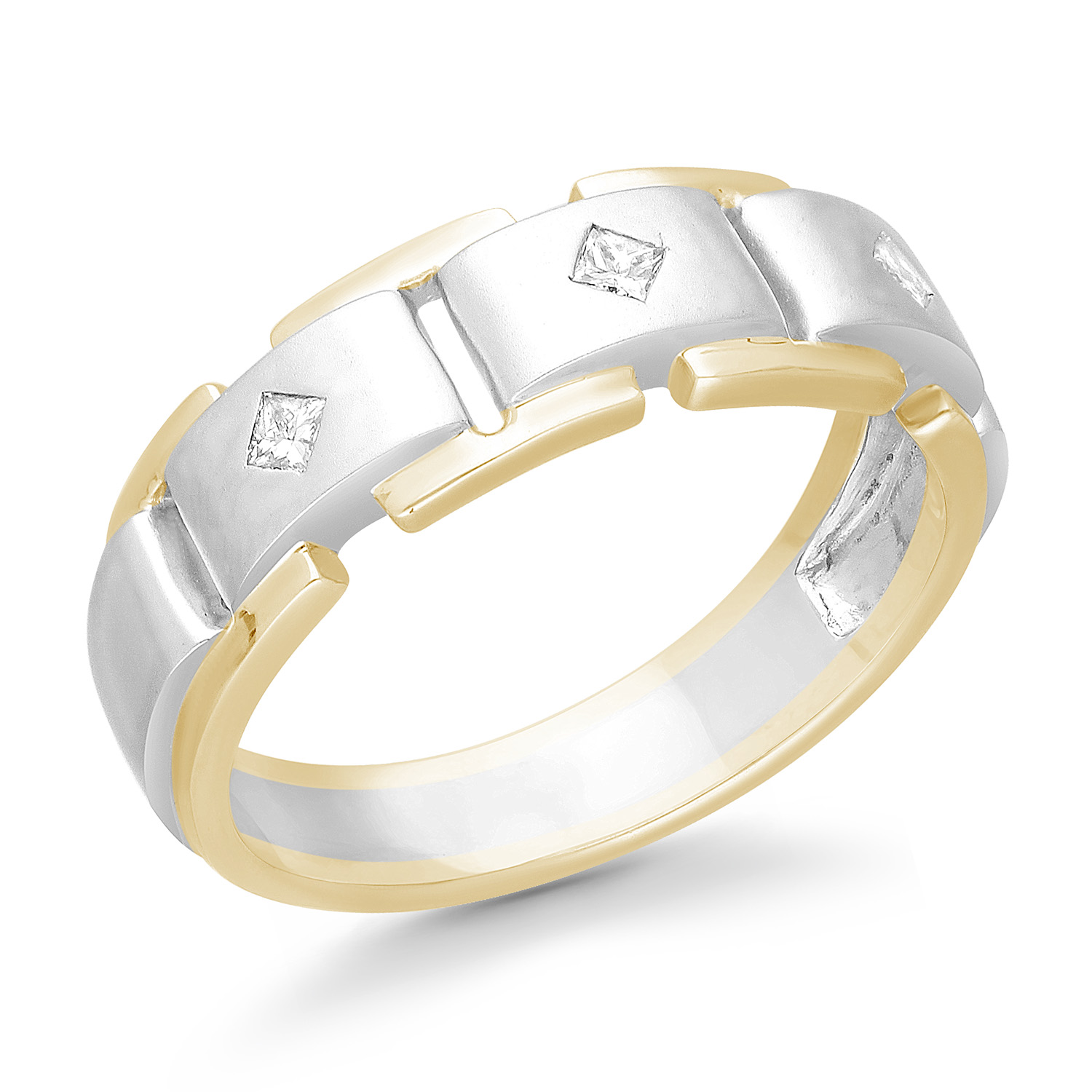 14K WHITE & YELLOW GOLD PRINCESS WHITE DIAMOND FASHION MENS RING