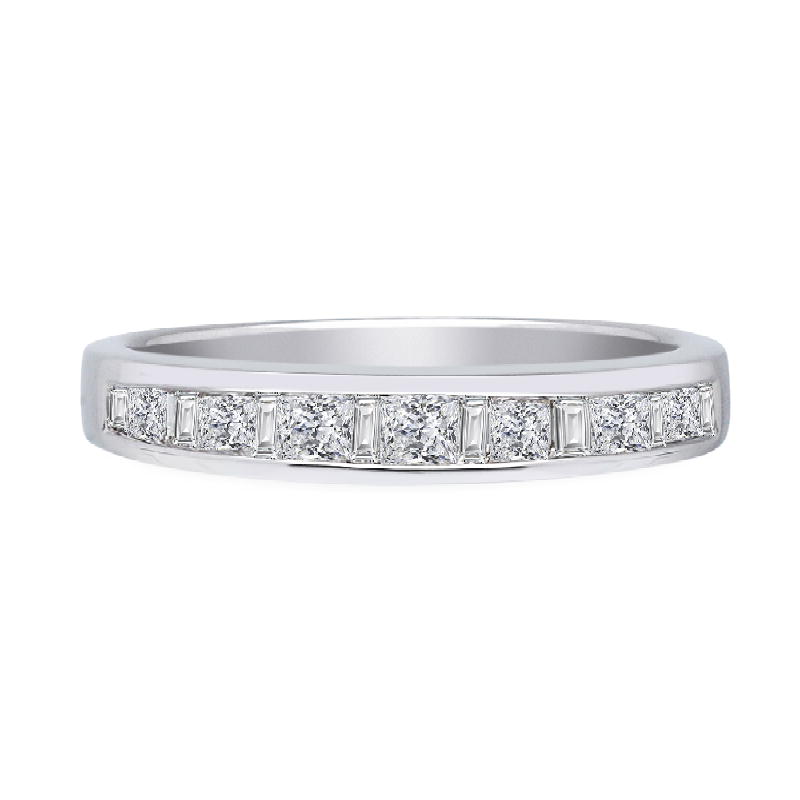 14K WHITE GOLD BAGUETTE PRINCESS DIA RIN