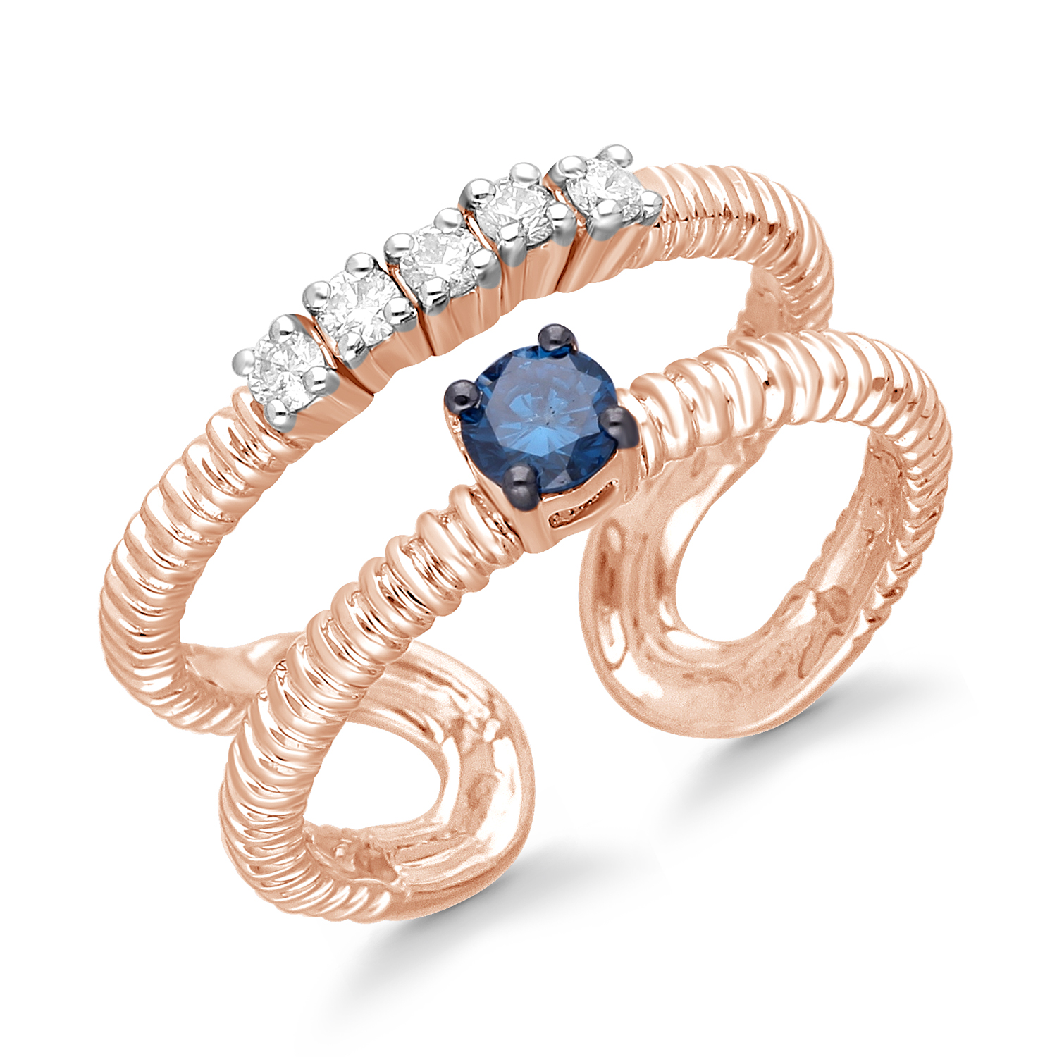 14K ROSE GOLD BLUE & WHITE DIAMOND ENG