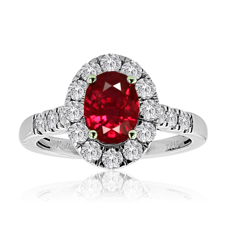 14K WHITE GOLD BLUE CENTER & WHITE DIA R