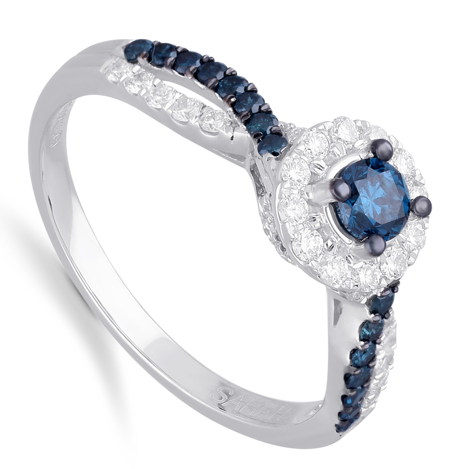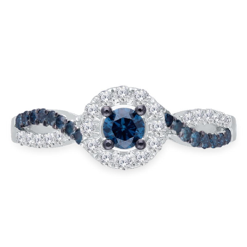 14K WHITE GOLD BLUE DIAMOND ENGAGEMENT RING
