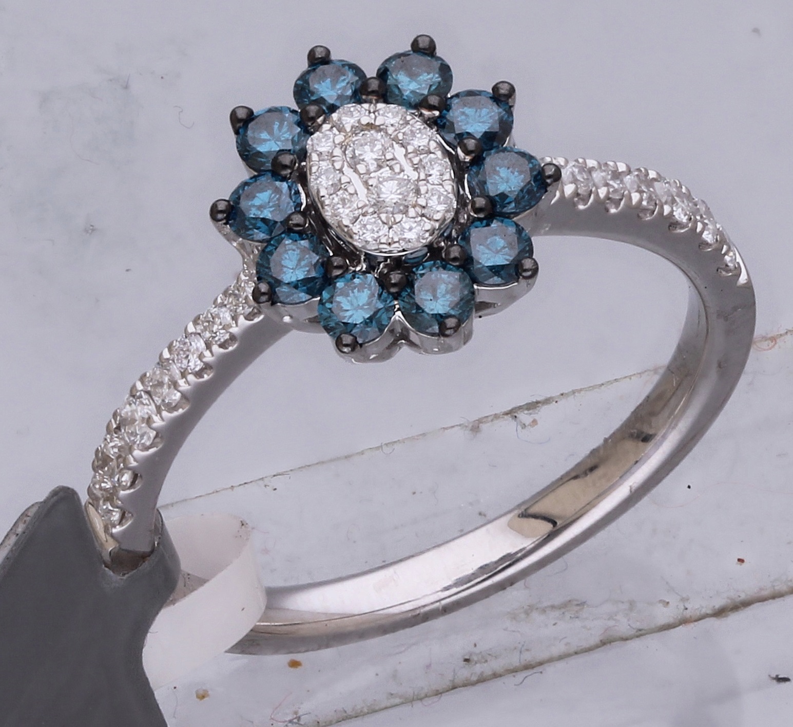 14K WHITE GOLD BLUE WITH WHITE DIAMOND FASHION RING