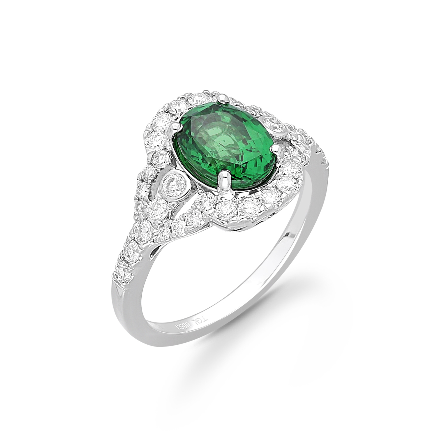 WHITE GOLD EMERALD WHITE DIAMOND RING