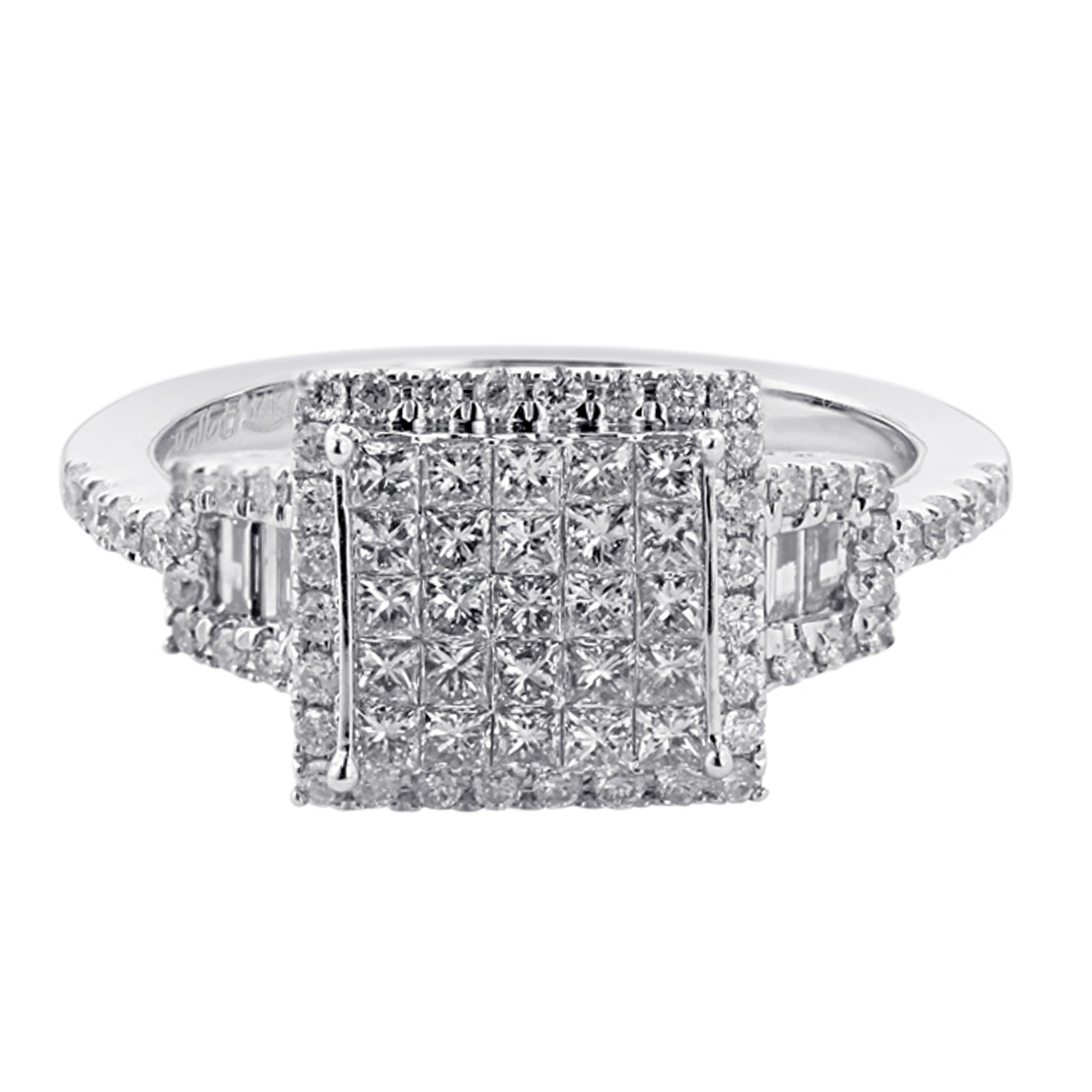 14K WHITE GOLD BAGUETTE & PRINCESS WITH WHITE DIAMOND FASHION RING