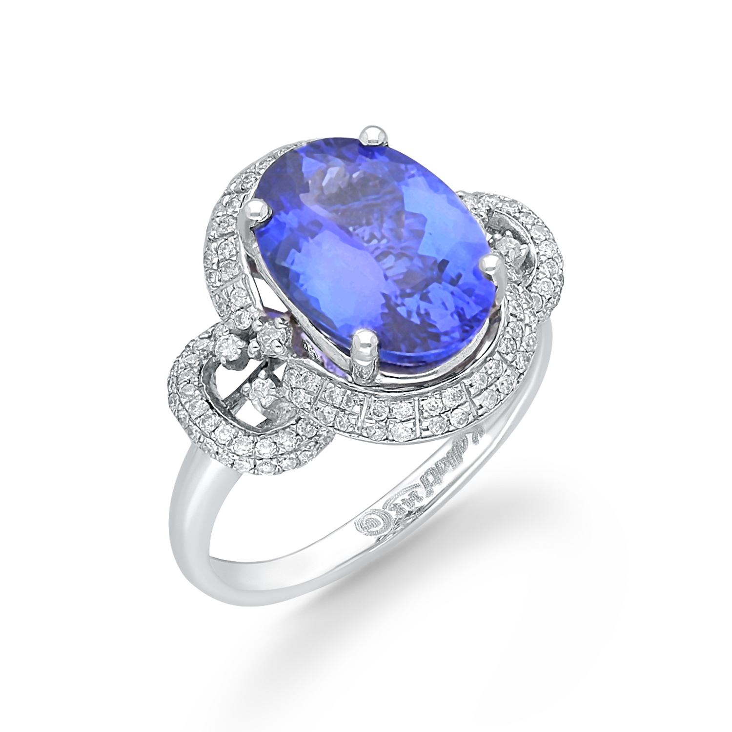 WHITE GOLD OVAL TANZANITE DIAMOND RING