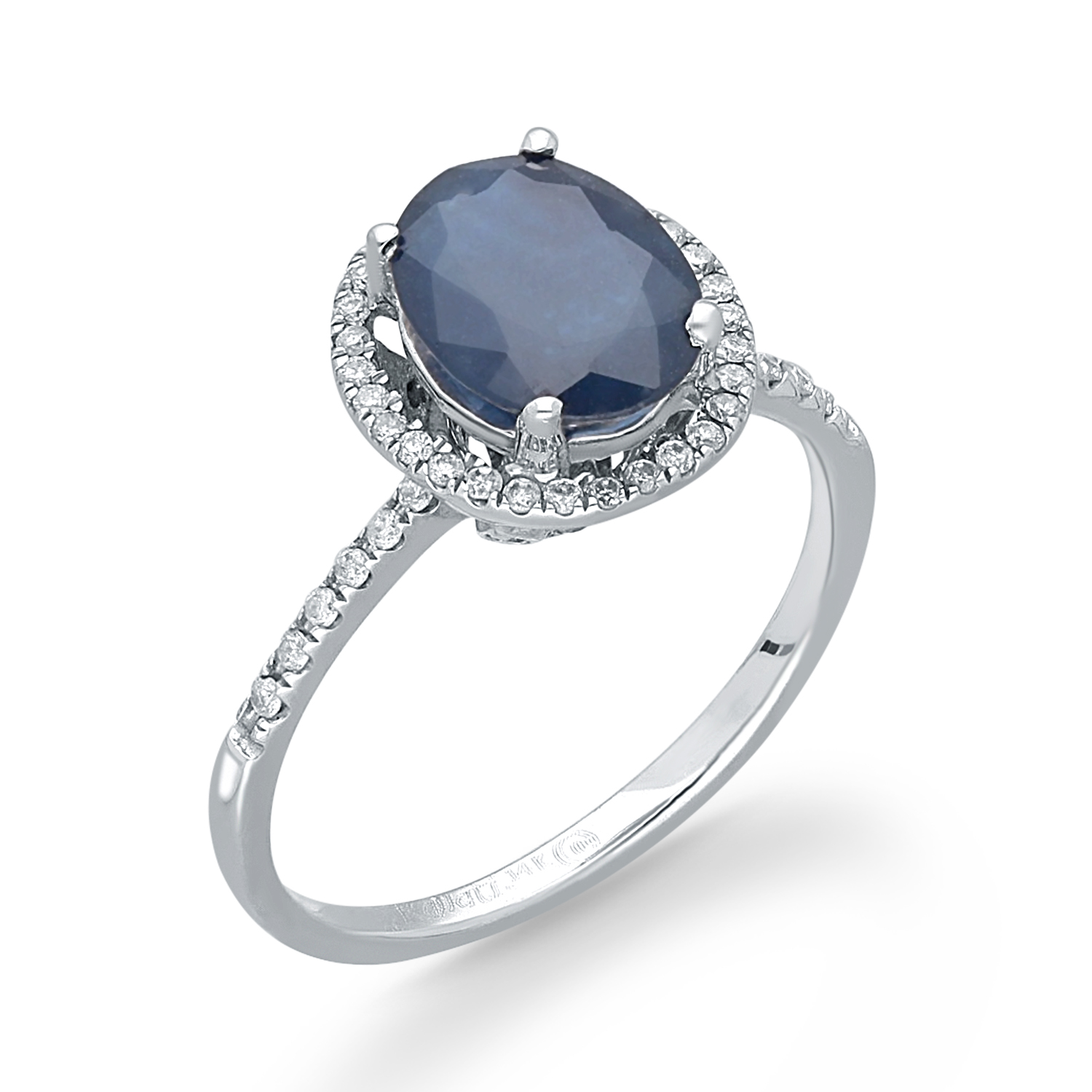 14K OVAL SAPPHIRE STONE & DIAMOND RING