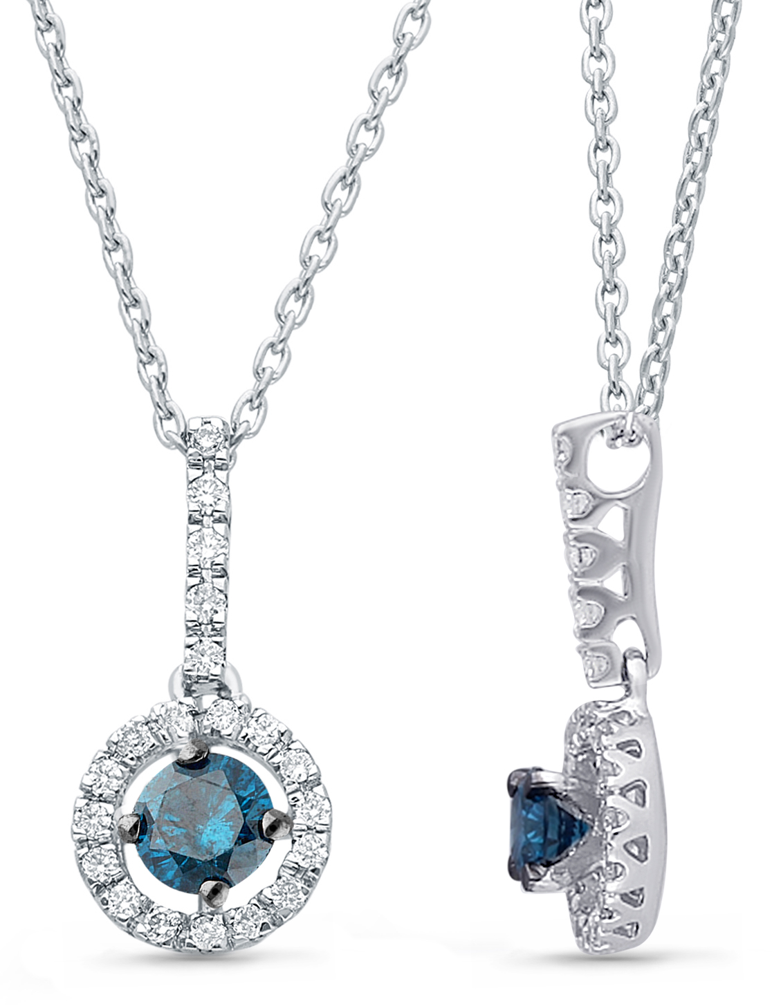 14K WHITE GOLD BLUE CENTER & WHITE DIA