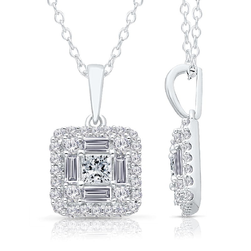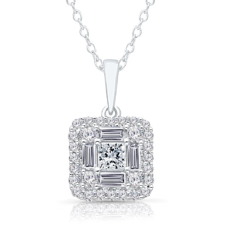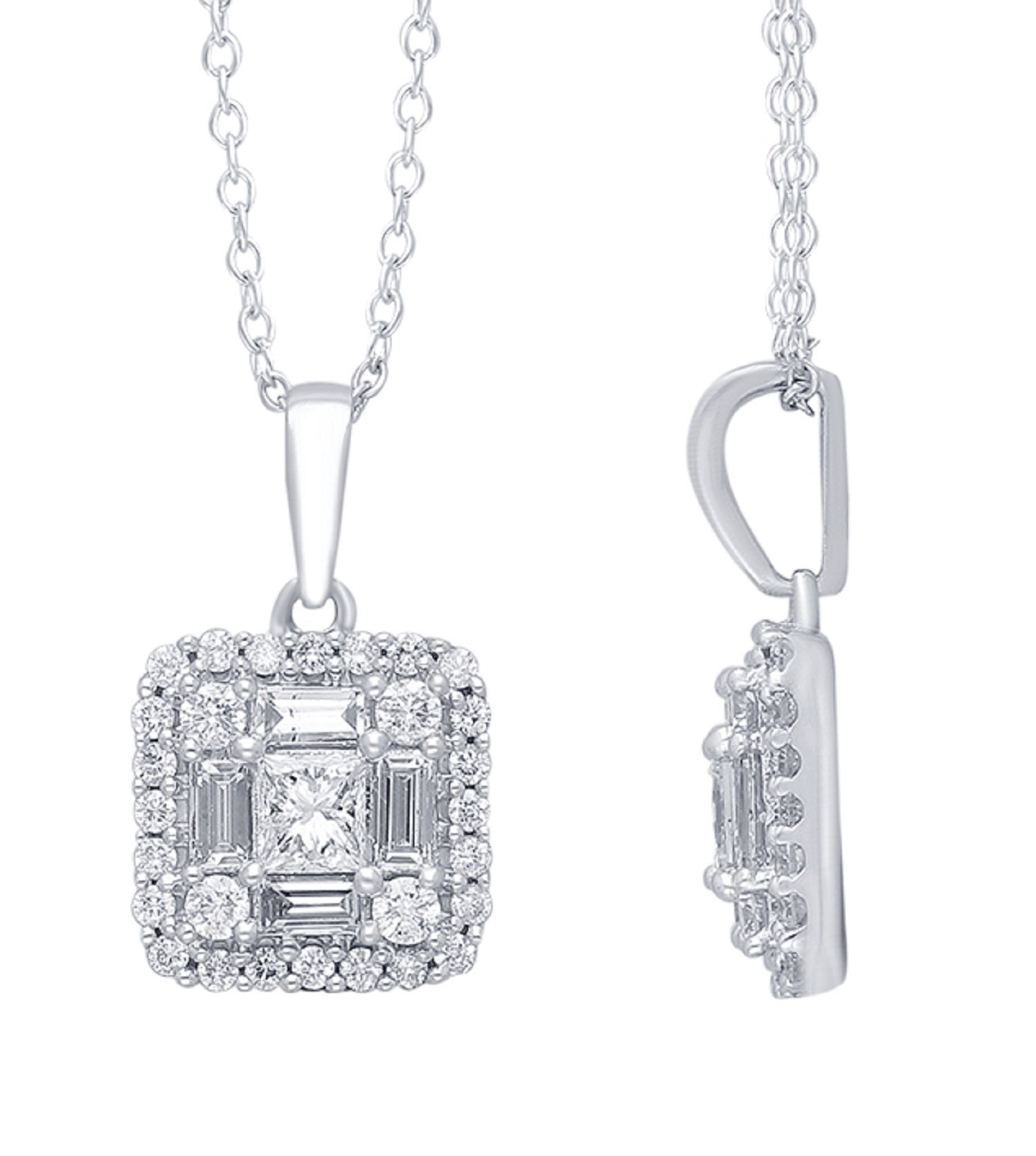 14K WHITE GOLD PRINCESS & BAGUETTE PENDA