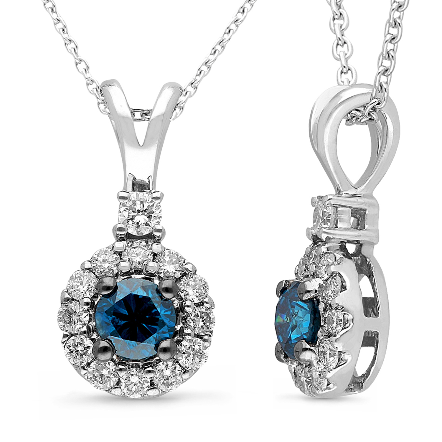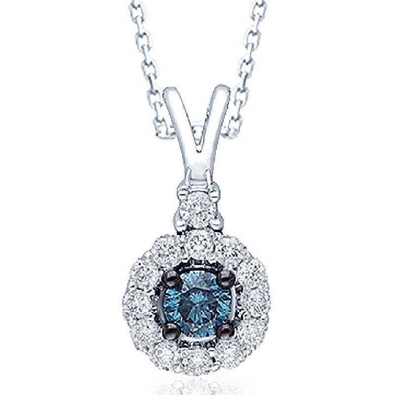14K WHITE GOLD BLUE CENTER & WHITE DIA P