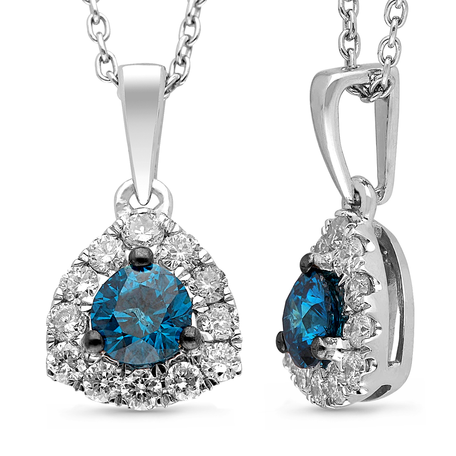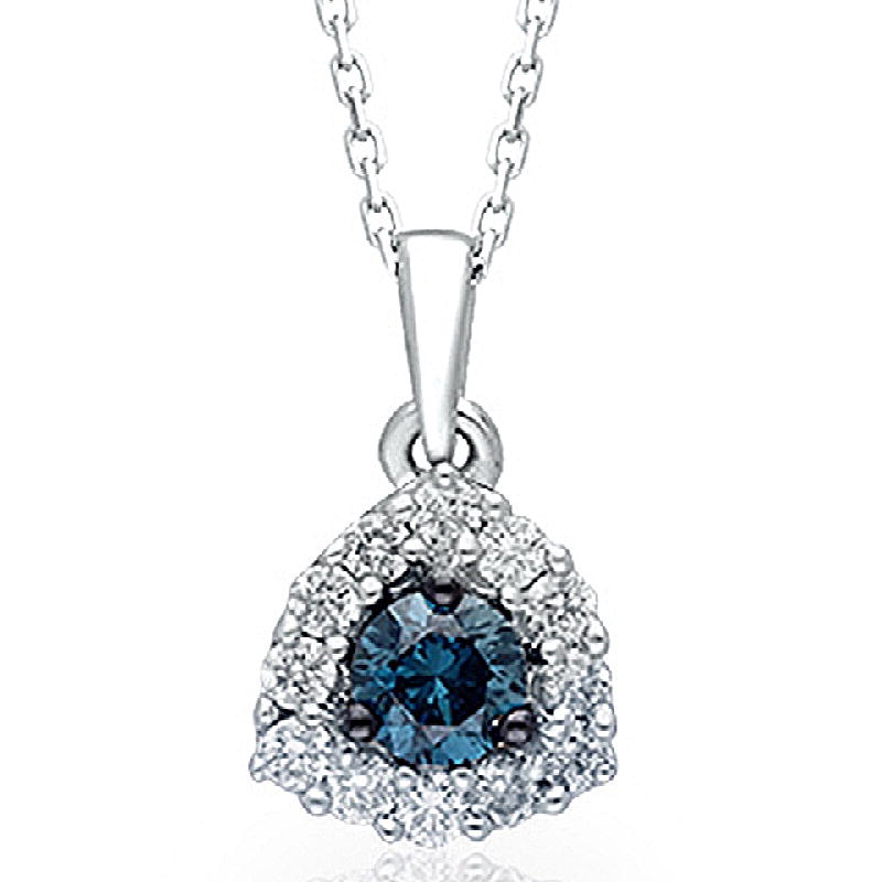14K WHITE GOLD BLUE CENTER & WHITE DIA P