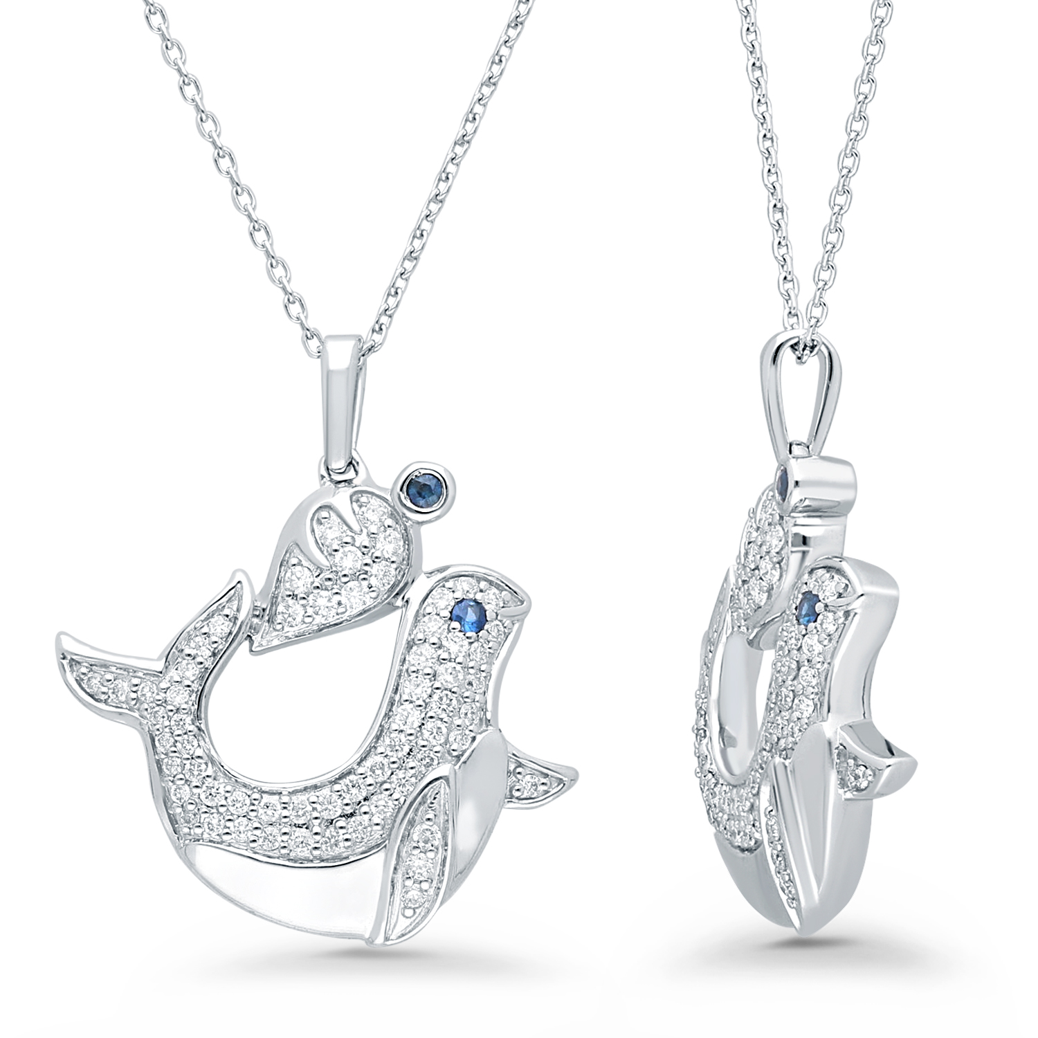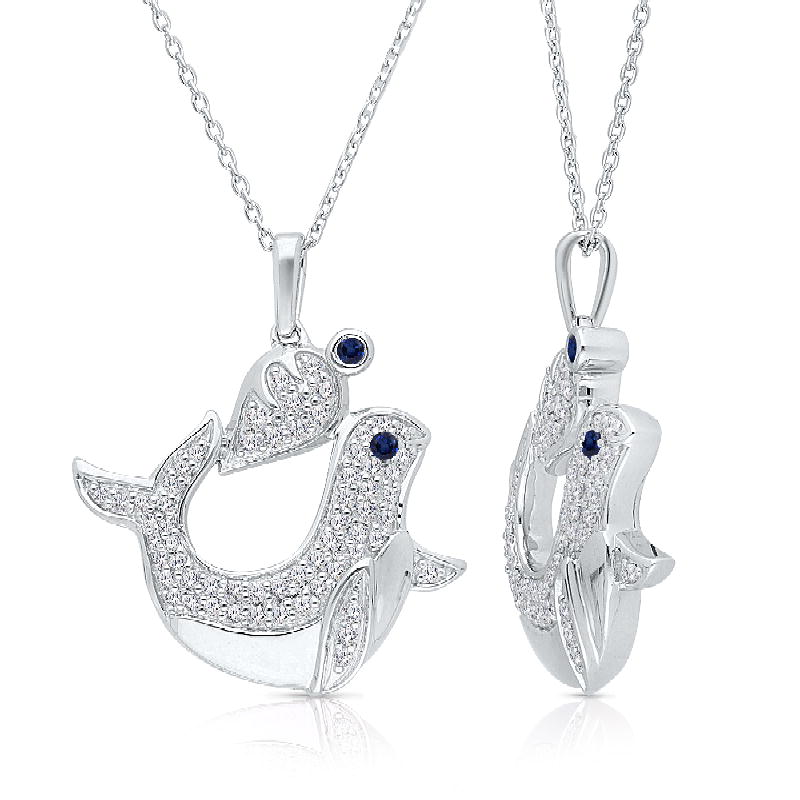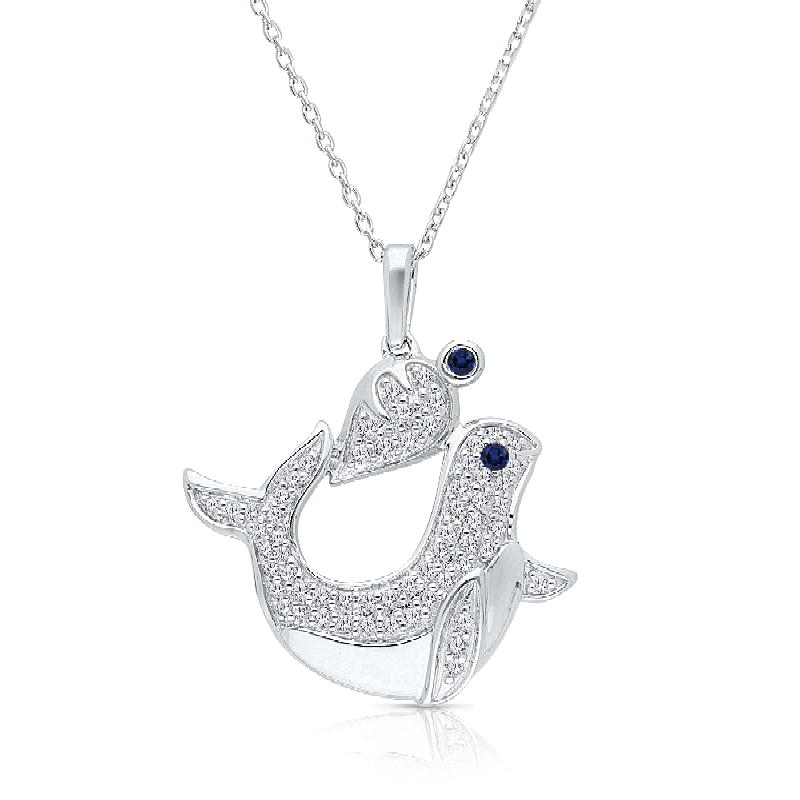 14K WHITE GOLD WITH DIA & SAPPHIRE STONE