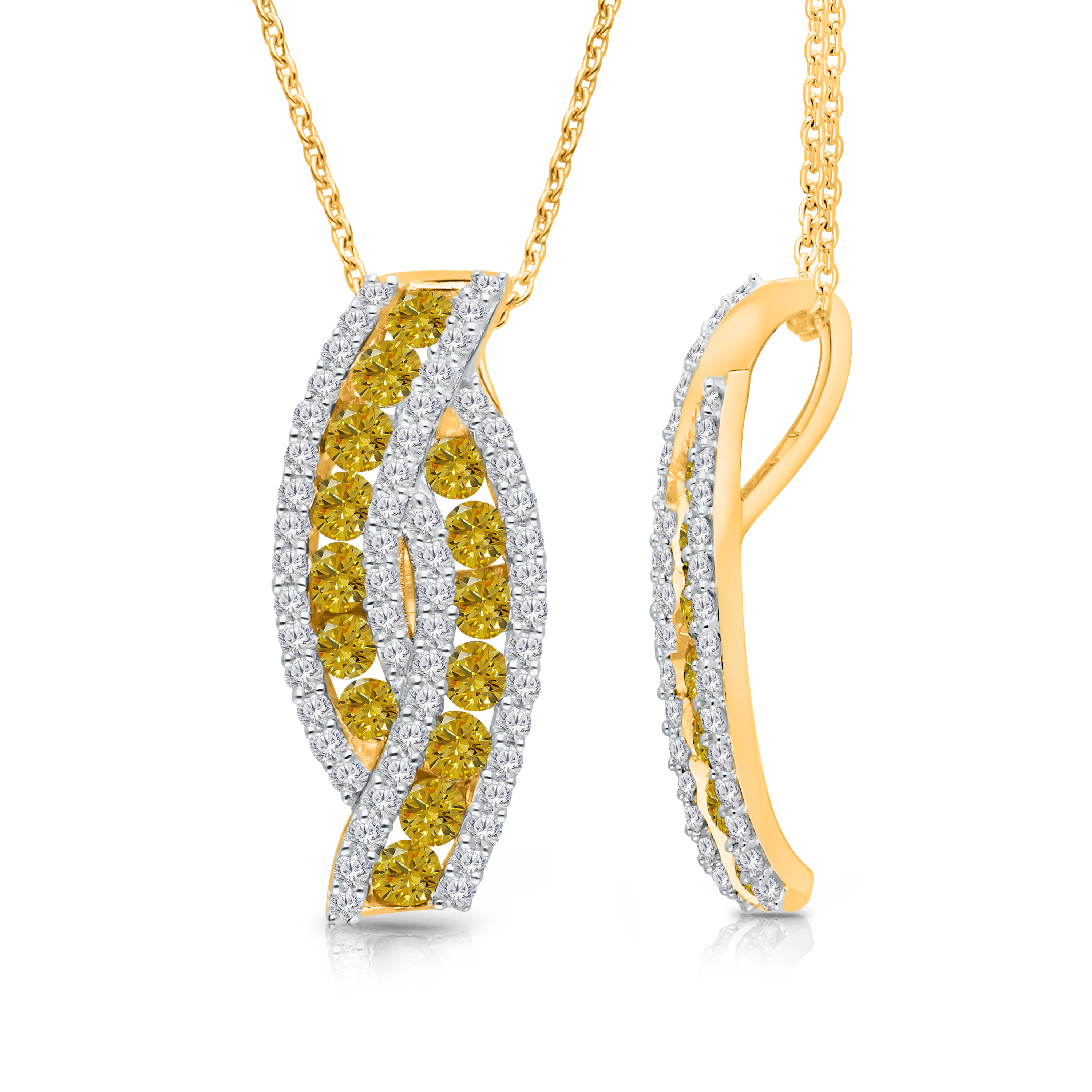 14K YELLOW GOLD YELLOW FANCY & WHITE DIAMOND FASHION PENDANT