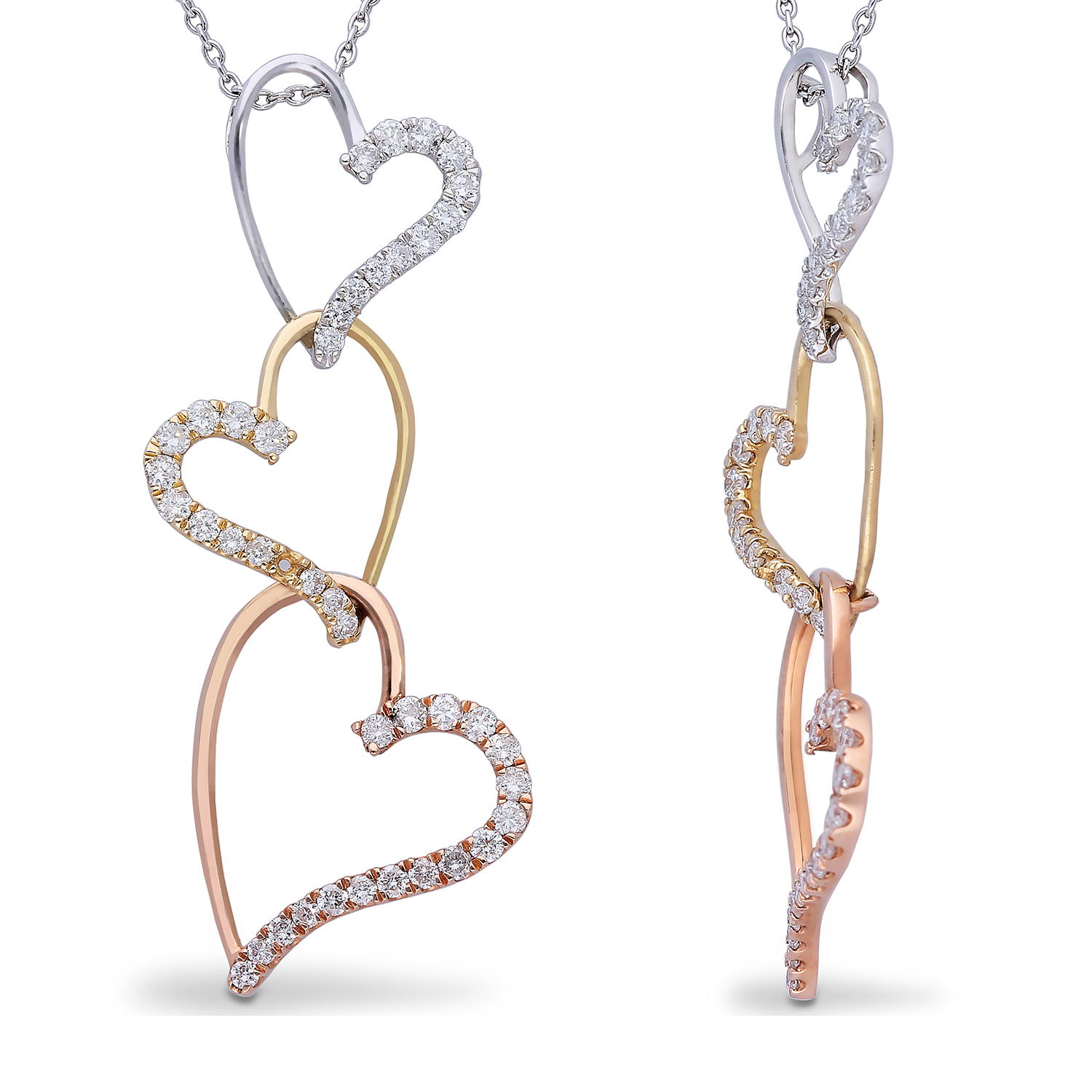 14K THREE TONE THREE HEART PENDANT