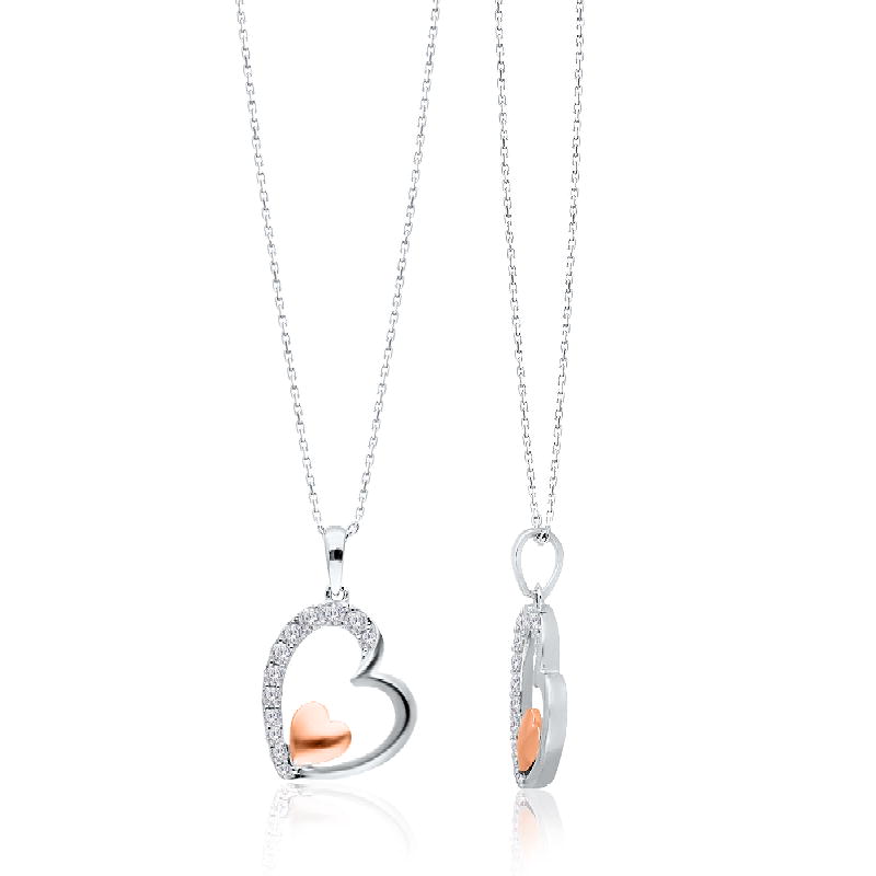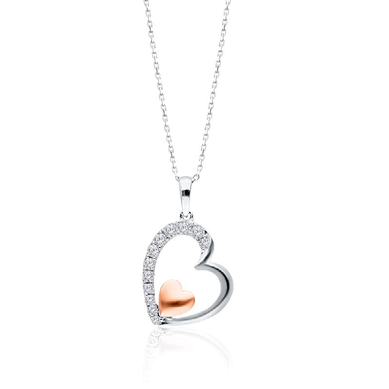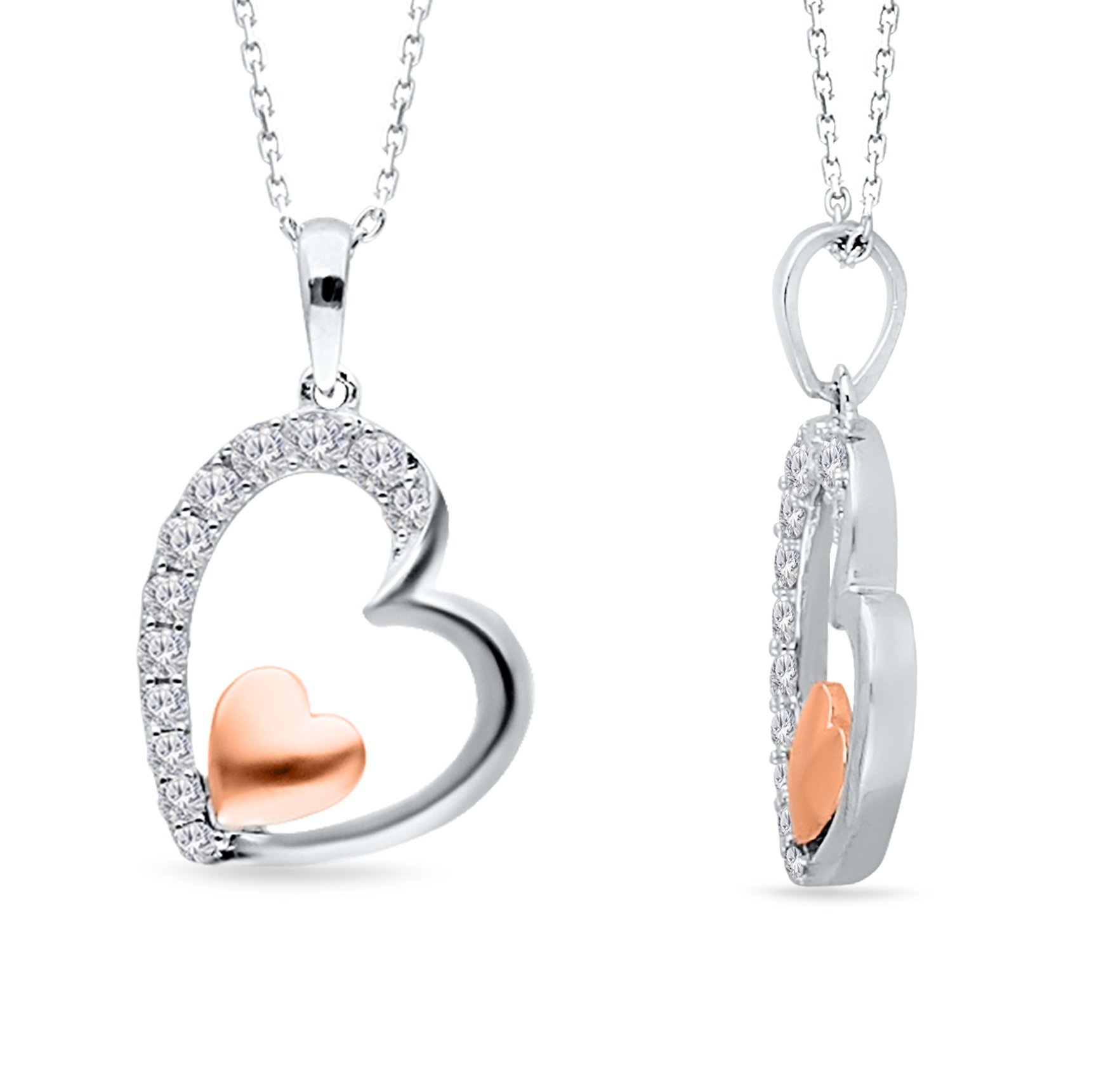 14K ROSE & WHITE GOLD WHITE DIAMOND PEND